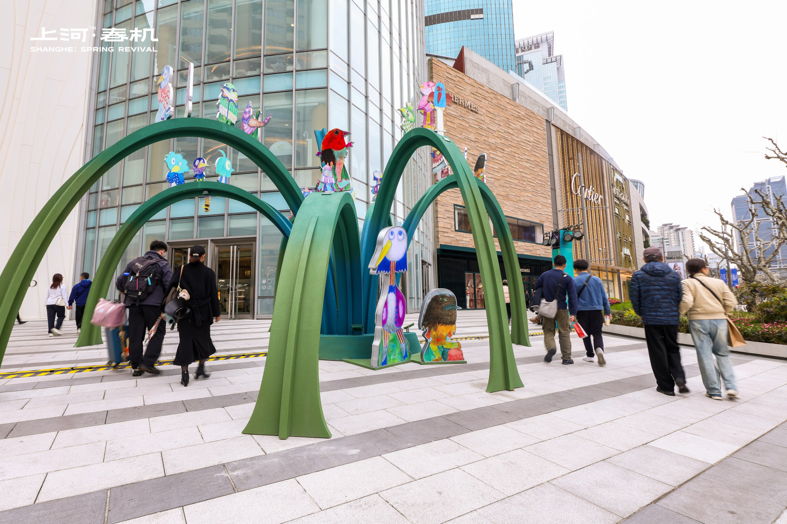 南京西路商圈整体氛围布置,让您每一步都置身于浓厚的春日艺术氛围中。