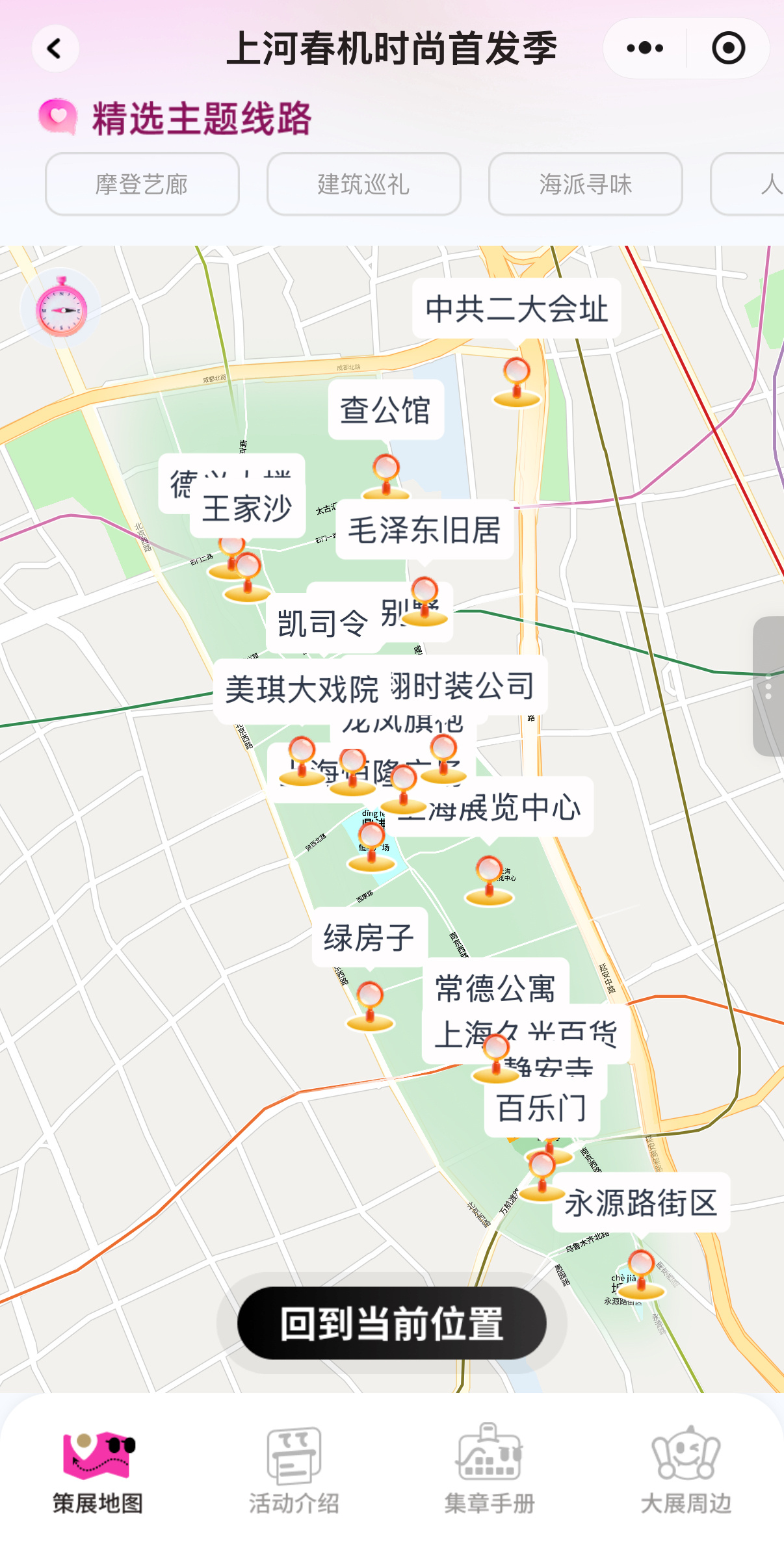 小程序精心规划了四条主题路线,地图可连线导航,轻松探索不同维度的静安风情: