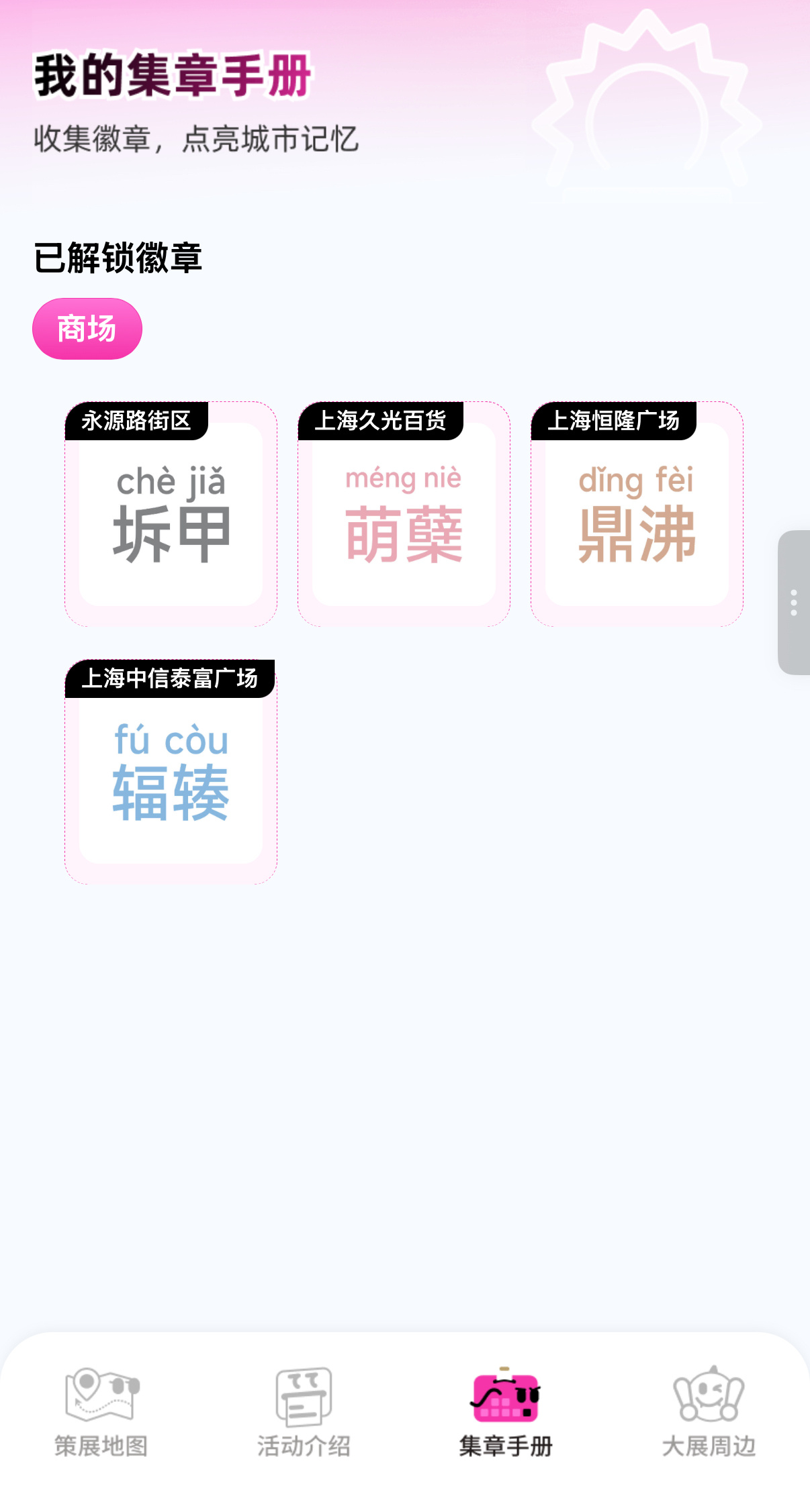 走进上海久光百货、恒隆广场等大型商业体内部,寻找隐藏的特定艺术展品。在地标详情页的“场内打卡点”列表中找到对应展品并打卡,可叠加获取额外积分。