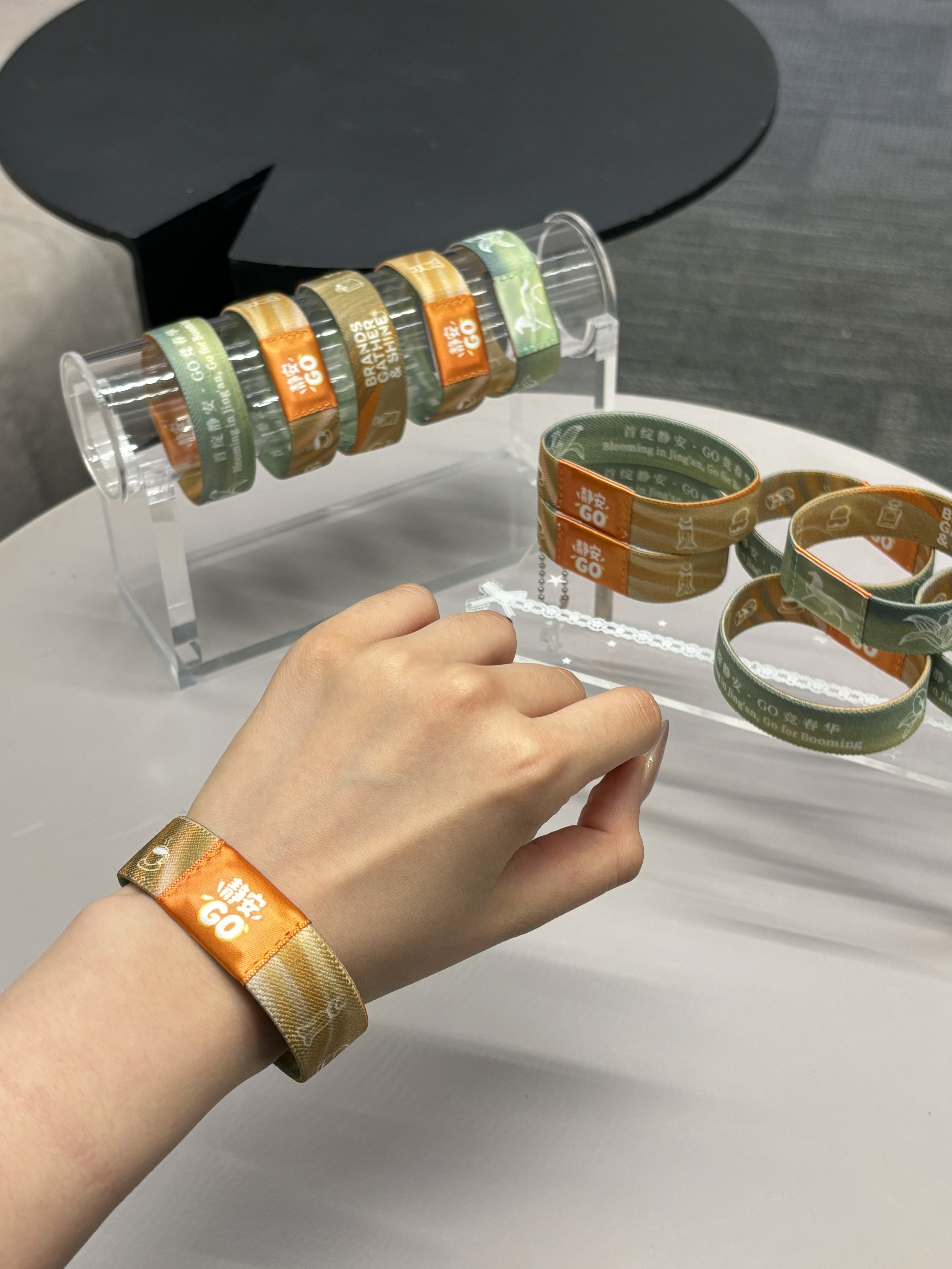 本次活动重磅首发“静安GO”时尚定制手环。新款手环设计全面焕新,巧妙融合市花白玉兰的优雅形态与静安区代表性时尚品牌的经典元素,外观更为时尚精致。手环定制专属标语“首绽静安,GO竞春华 / Blooming in Jing’an, Go for Booming”,象征着春日活力与静安时尚脉搏的同频共振。