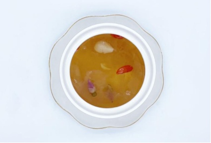 步骤:干银耳、百合提前泡发;锅中放入泡发好的银耳、百合,加清水煮40分钟;放入玫瑰花、陈皮、桑葚、山楂,煮15分钟后捞出;加枸杞点缀,冰糖调味即可。