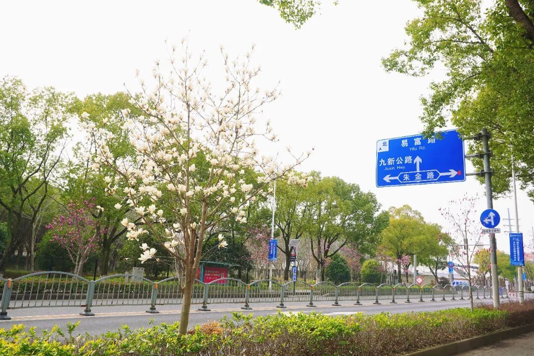 若是行至姚北路,更是能邂逅一场盛大的玉兰盛宴。几十株玉兰树连成一片花林,花开得轰轰烈烈,满树繁华,绵延数十米,淡淡的花香随风飘散,沁人心脾。