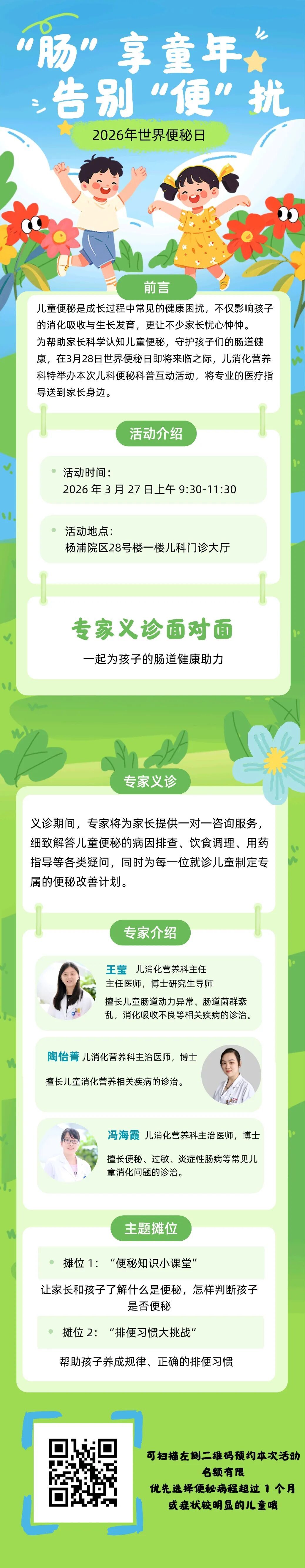新华创全 |告别“便”扰,“肠”享童年!3月27日儿消化营养专家义诊,快来预约吧