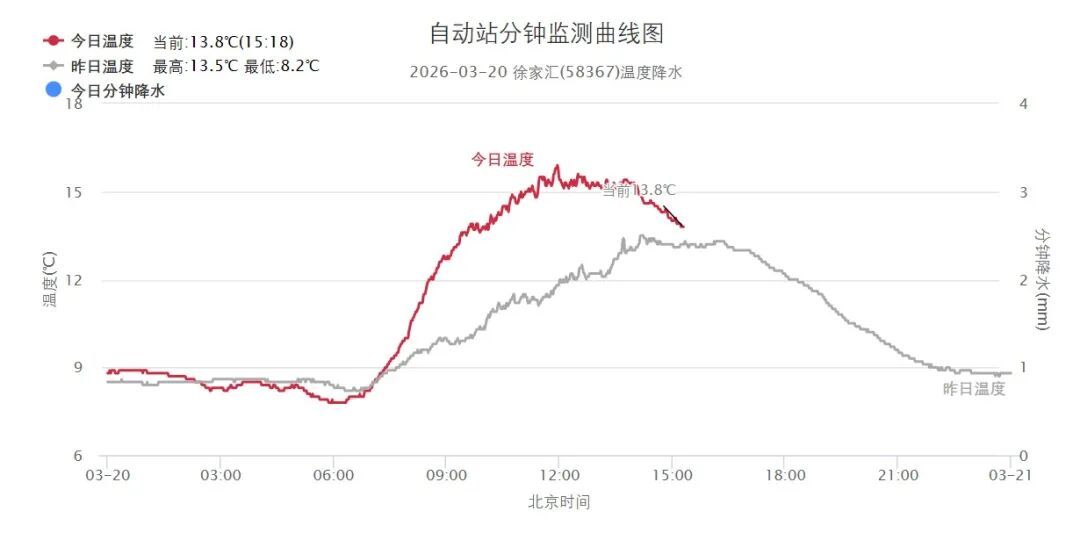 二月二“龙抬头”,今天一早太阳也特别有精神,带动着气温稳步抬升,全市最高气温普遍来到14~17℃,徐家汇站15.9℃。午间随着云雨带逐渐东移,云量开始增多,傍晚前后逐渐转为短时小雨,预计今天半夜前后雨止转多云。
