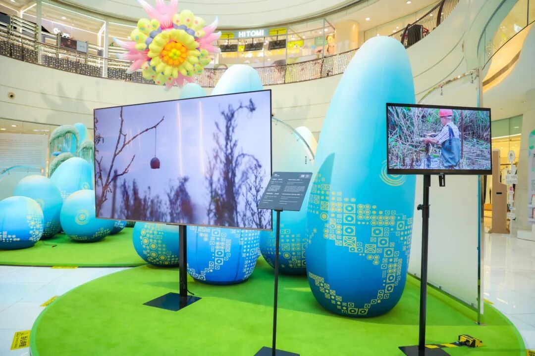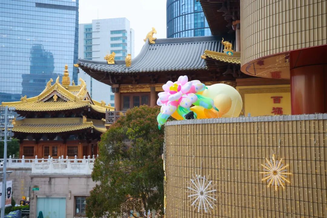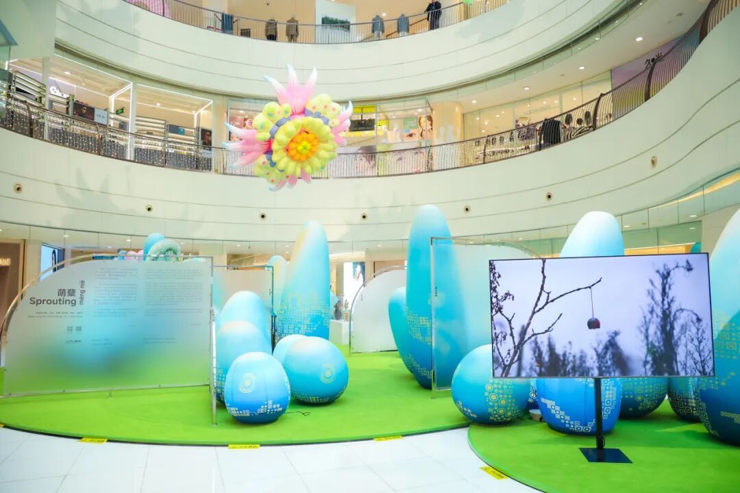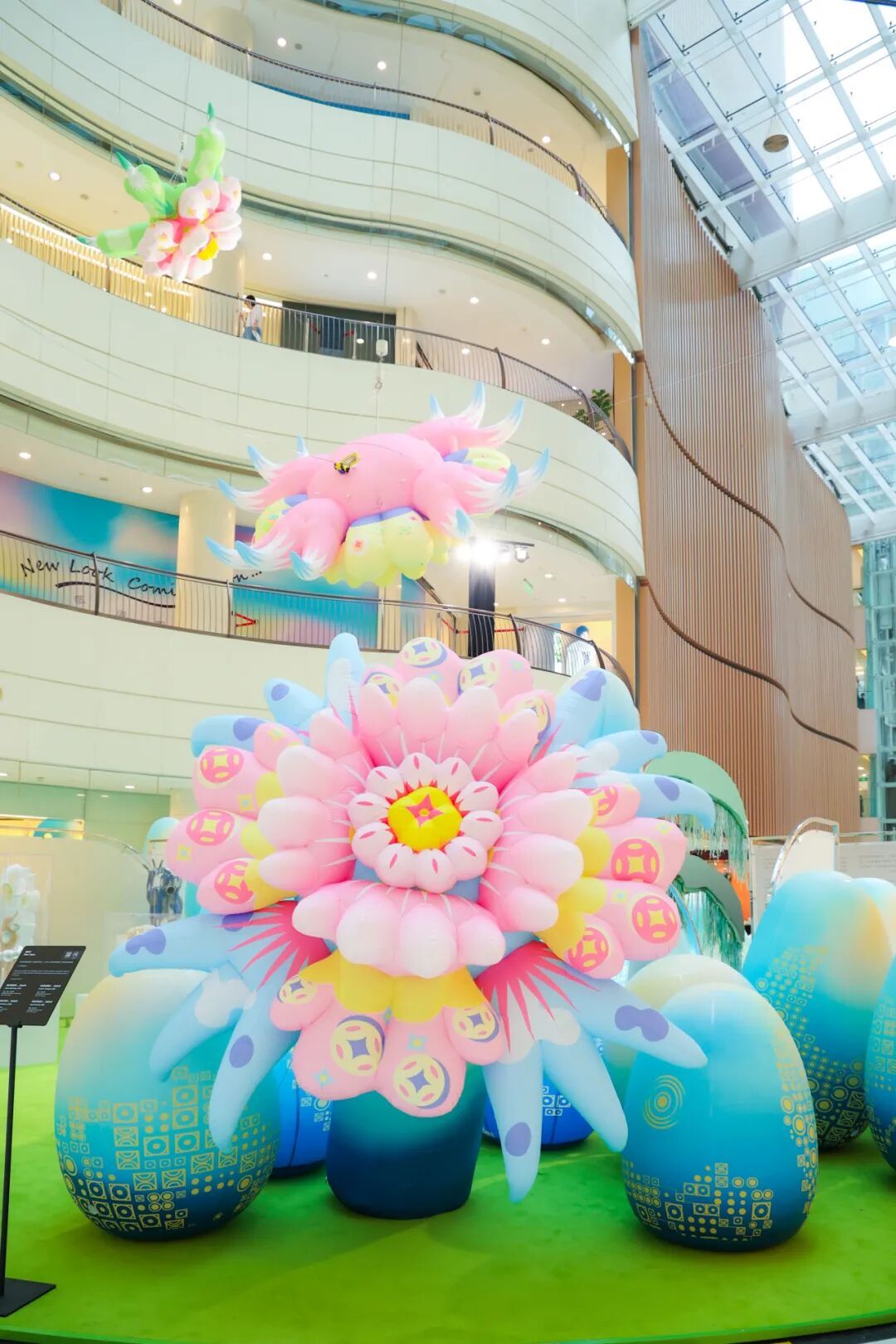 在艺术家周逸乔的作品中,牡丹花恣意生长,轻灵地漂浮在空间里。拈花的手型悬在半空,仿佛下一秒就要将这春光珍藏。藏在我们的集体记忆里的传统符号,不再只是概念,在久光百货,它们生猛地“活”过来了。周逸乔标志性的气膜装置,直观冲击着每一位观众的感官。