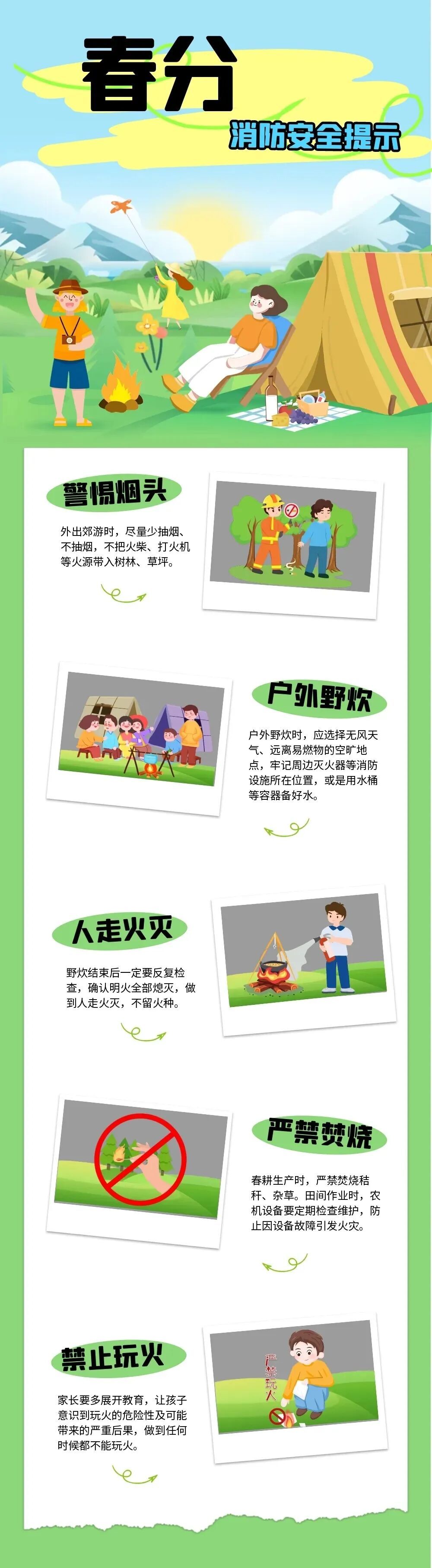 春分时节风大物燥,田间地头、山林郊外隐患多,野外不玩火、不抽烟乱扔烟头,祭祀扫墓远离易燃草木,小小火星极易引发山火、烧坏秧苗!