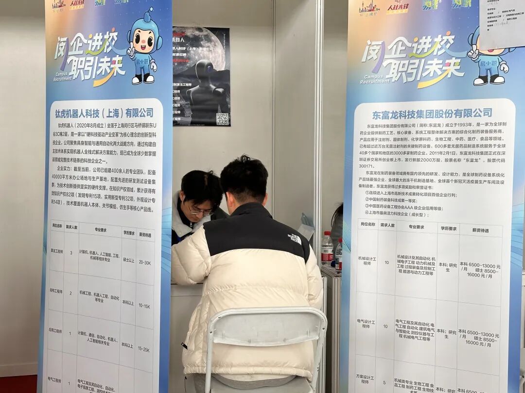 除了东富龙,招聘会现场出现了诸多闵行企业的身影。据介绍,本次招聘会特设“闵行专区”,集中组织区内44家重点企业参展,涵盖航天、生物医药、智能制造、数字经济等区域重点产业领域,为高校毕业生提供“家门口”的优质就业机会。