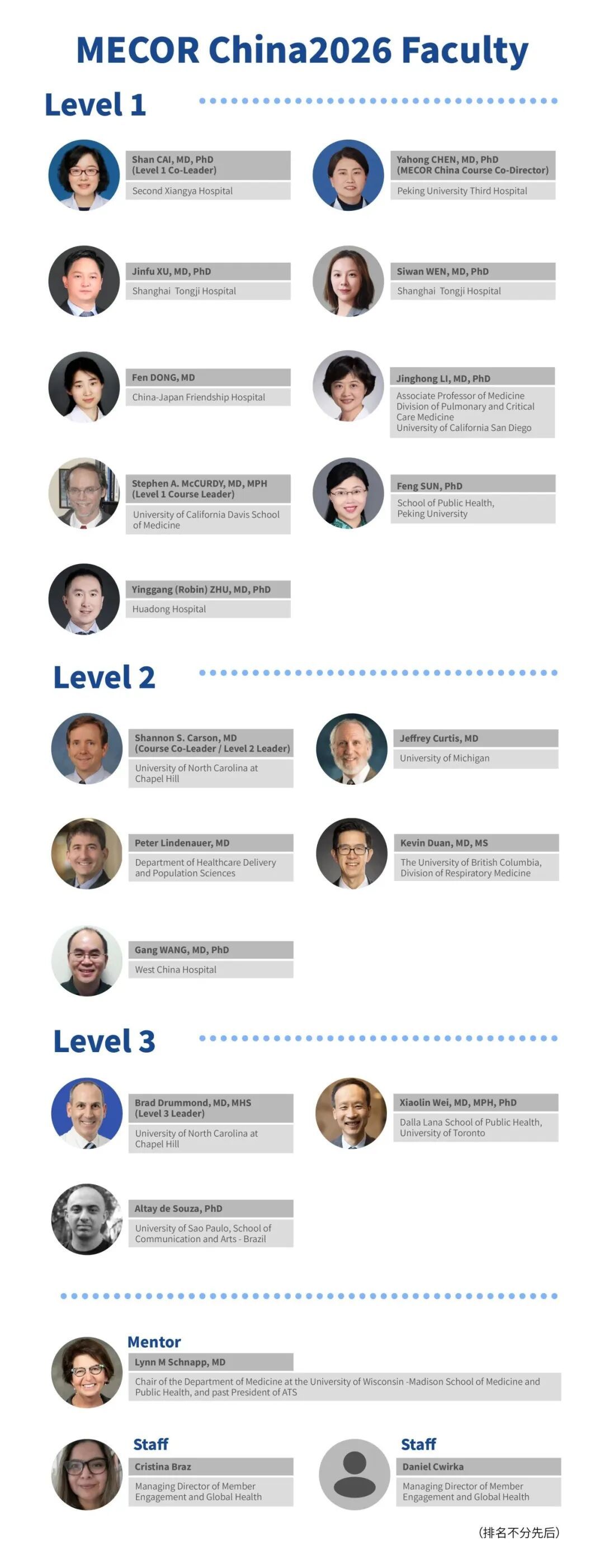 为期五天的沉浸式进阶培训将分设Level 1、Level 2和Level 3三个层级进阶班。MECOR教师团队由同济大学附属同济医院院长、中华医学会呼吸病学分会(CTS)副主任委员徐金富教授,北卡罗莱纳大学医学院Shannon CARSON教授,以及北京大学第三医院陈亚红教授共同领衔。培训采用"沉浸式封闭授课+工作坊"模式,全程英文教学,注重理论深度与实操训练并行,带领学员深入探讨呼吸领域前沿课题,助力中国中青年医师实现国际视野与本土实践的双重跃升,为打造我国呼吸领域临床研究中坚力量注入新动能。