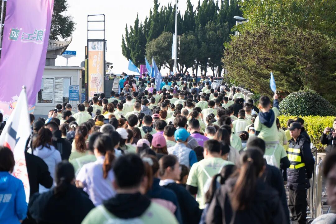 参赛选手们个个装备齐全、精神抖擞,枪声落下的瞬间,人群如潮水般从金山嘴渔村凤凰城奔涌而出,一路向着滨海赛道进发,途经龙泉港出海闸、外海堤等金山滨海标志性点位,将沿岸美景尽数收入眼底。