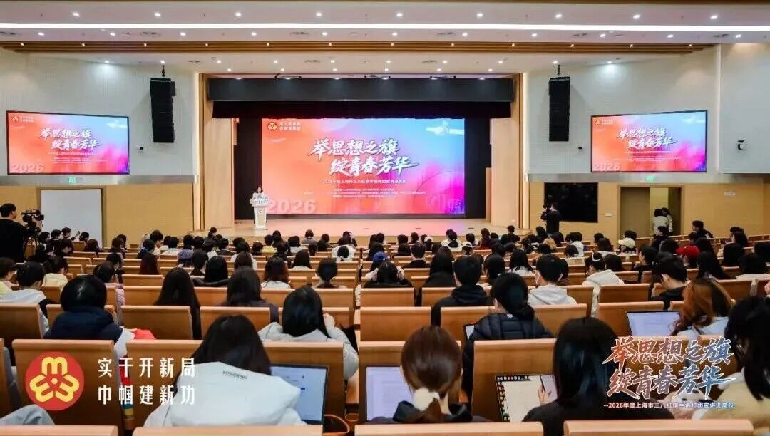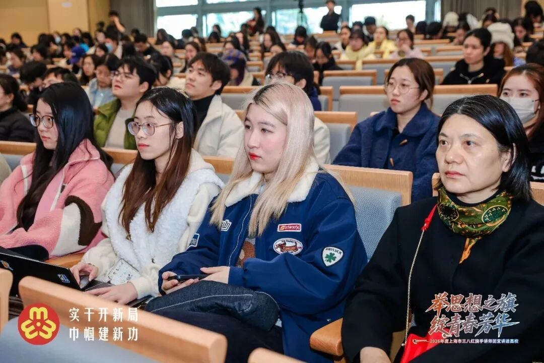 日前,“举思想之旗,绽青春芳华”——2026年度上海市三八红旗手讲师团宣讲进高校活动在华东师范大学普陀校区举行。本次活动由上海市妇联、上海市教育委员会、华东师范大学主办,上海市三八红旗手联谊会、上海市教育系统妇工委、普陀区妇联、华东师范大学妇委会、华东师范大学党委学生工作部承办。来自航天、法治、科研、数字文化领域的四位“申城女主角”走进校园,与高校师生代表,以及新兴领域女性代表等近400人相聚一堂,展开了一场关于理想、奋斗与时代使命的对话。