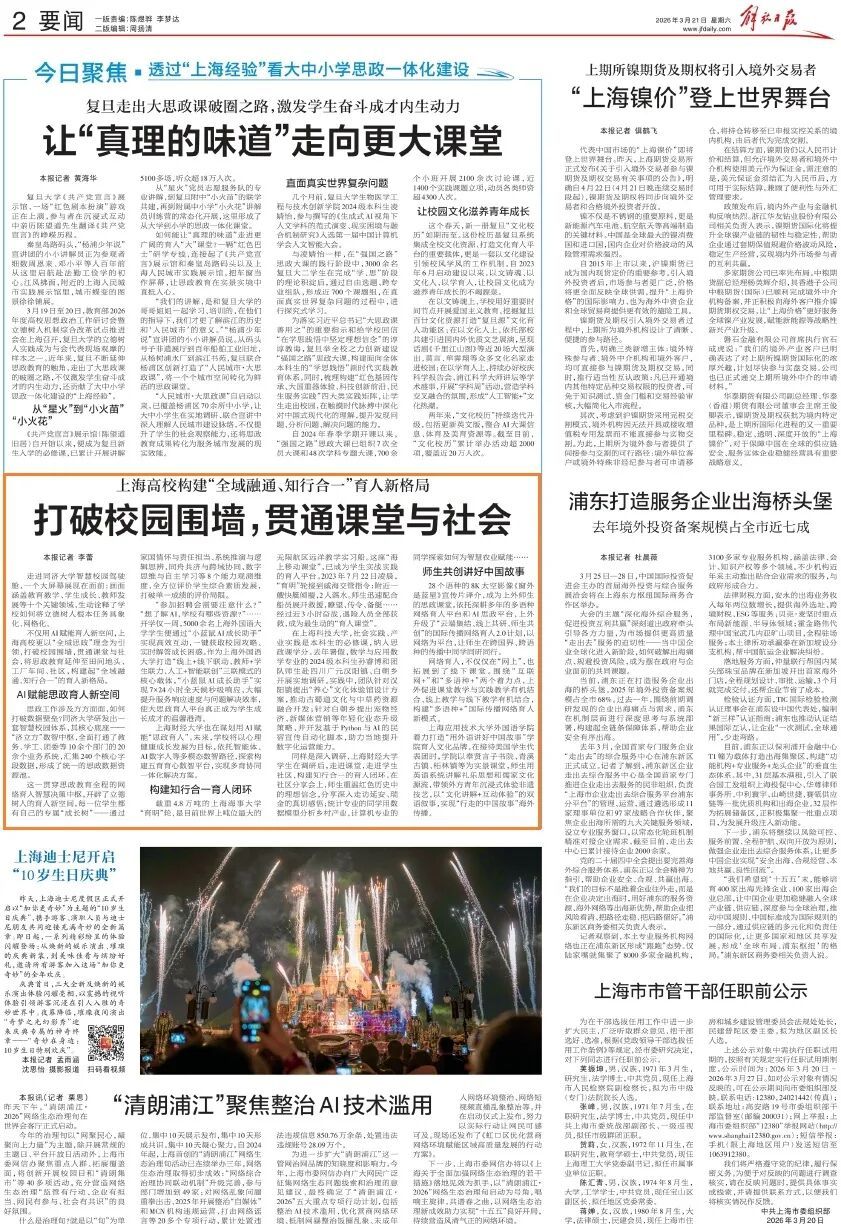《解放日报》关注上海高校构建“全域融通、知行合一”育人新格局:打破校园围墙,贯通课堂与社会