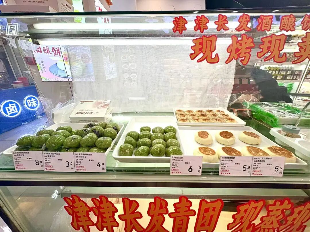 除了现包现蒸的新鲜青团,多家老字号还推出了礼盒装,为春日馈赠增添新意。杏花楼将经典豆沙、蛋黄肉松青团装入礼盒,搭配麦香龙井茶味新品,兼顾传统与创新;泰康主推传统豆沙款青团;津津长发汇集多款经典口味,还同步推出现烤酒酿饼,丰富时令选择。
