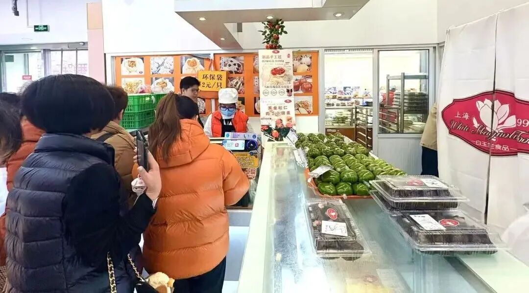 为保证更佳口感,白玉兰青团全程手工现做。据门店负责人介绍,青苔粉需经反复打制至光泽透亮,再放入蒸箱蒸制100分钟,随后由师傅现场包制,全程新鲜看得见。据了解,门店青团日均销量可达数万只。不少市民更是多次回购,有顾客表示:“每年都会购买咸蛋黄肉松与豆沙口味,不仅自己食用,还会邮寄给外地亲友分享。”