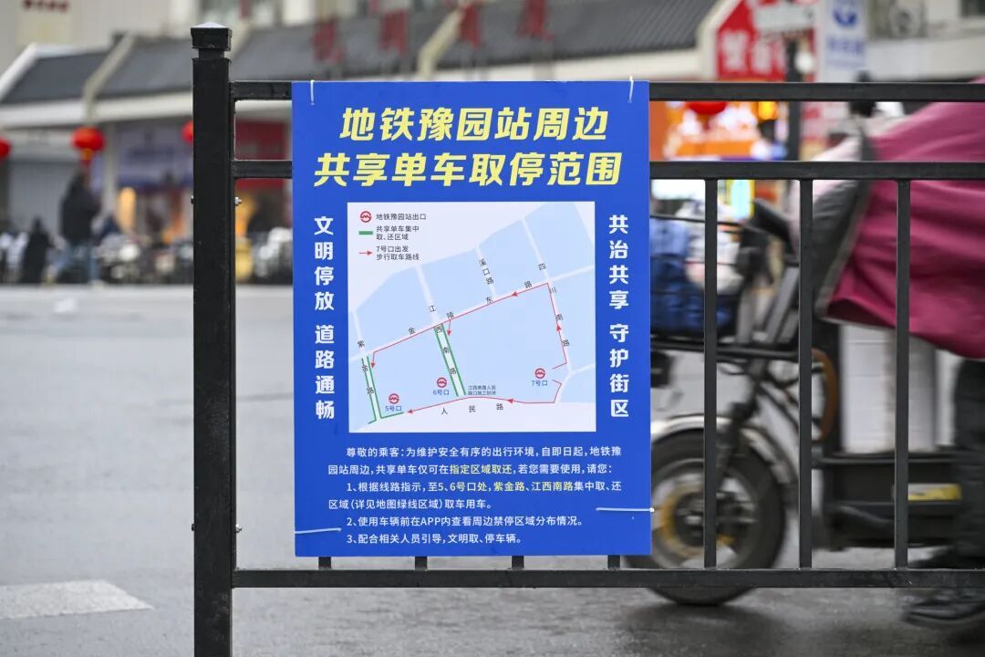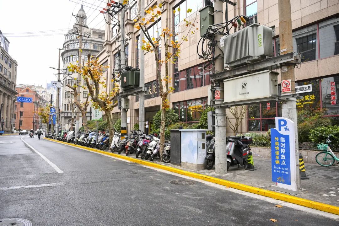 外滩街道以四川中路以东核心区域为试点破局,实施非机动车分类停放,共享单车企业深度参与共治优化街道全域电子围栏设置,引导沿线企业单位挖掘停车资源。