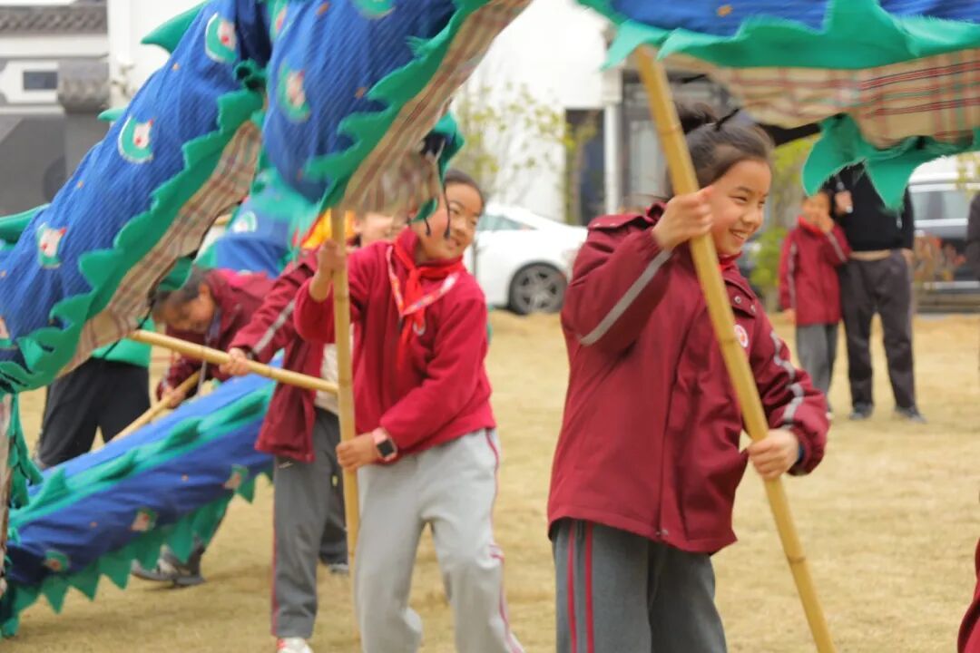 表演结束后,孩子们意犹未尽,不少小朋友还模仿着舞龙的动作,兴奋地比划着。9岁的刘子萱刚刚体验完舞龙道具,脸上洋溢着笑容:“今天开笔了,还体验了舞龙,学了新的本领,我很开心!”