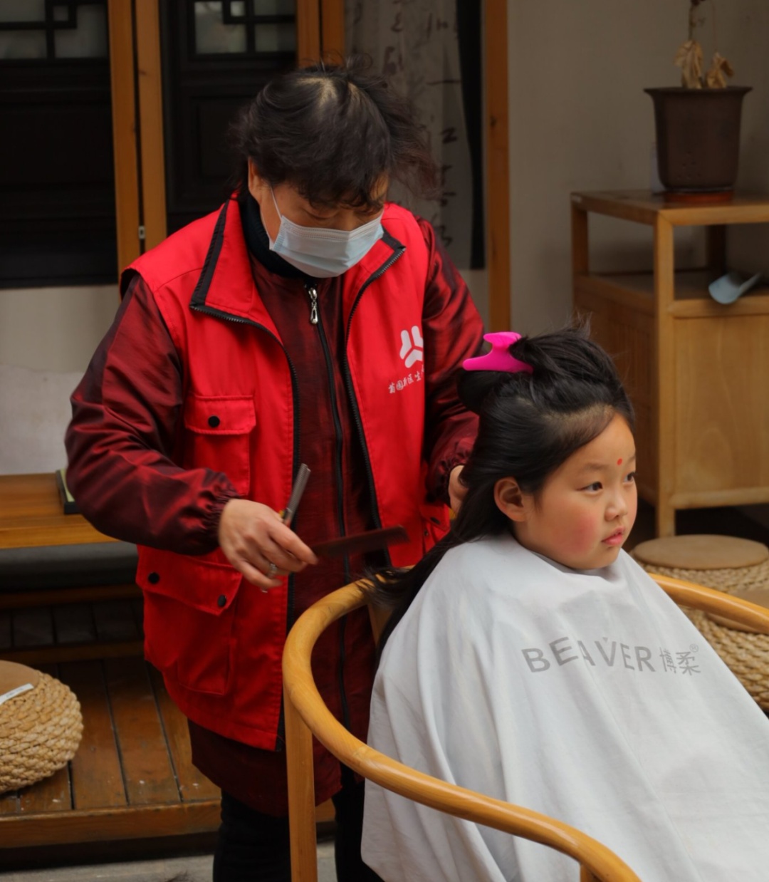 民间素有“二月二剃龙头,一年都有精神头”的说法,这一天理发寓意辞旧迎新、带来好运。活动现场,理发师志愿者早已准备就绪,孩子们在家长的陪同下轮流剪头发,期待“从头开始”的新气象。只见理发师手持梳子和剪刀,动作轻柔而娴熟,一边为小朋友修剪发型,一边送上“健康成长、聪明伶俐”的祝福。剪完头发的小朋友对着镜子左看右看,脸上露出满意的笑容。