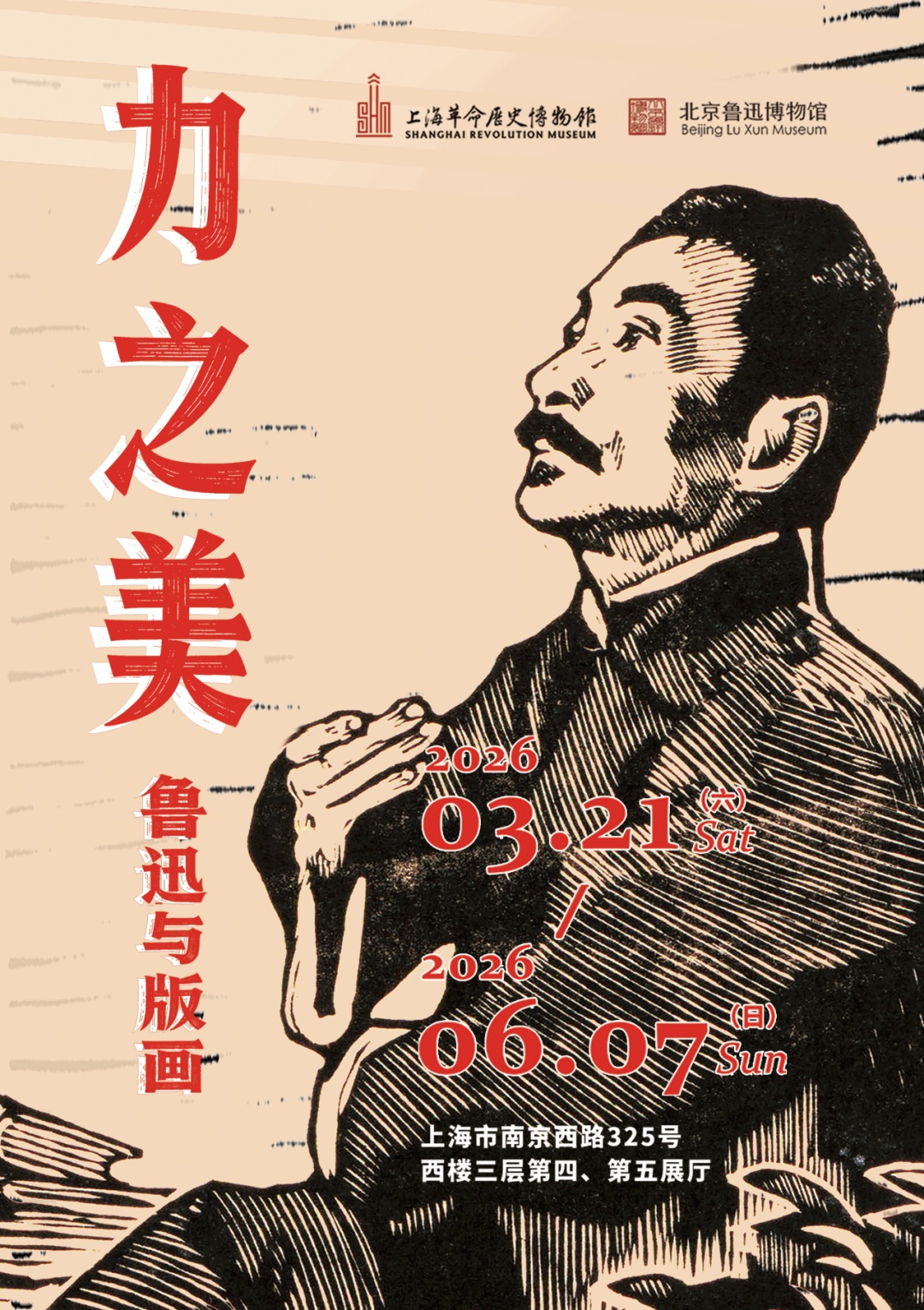 2026年3月21日,由上海革命历史博物馆、北京鲁迅博物馆联合主办的“力之美——鲁迅与版画”展在南京西路325号西楼三楼开幕。展览汇聚了鲁迅先生所藏中外版画、金石精品及其培育的两代版画家作品共计72件(套),其中一级文物10件(套)、二级文物48件(套)。展览以“萌芽”“深爱”“唤醒”“怀念”四个单元,系统呈现鲁迅先生从融汇中西的收藏家到“中国新兴木刻版画之父”的艺术历程,向观众全面呈现其艺术理念与对中国新兴版画运动的重要推动。