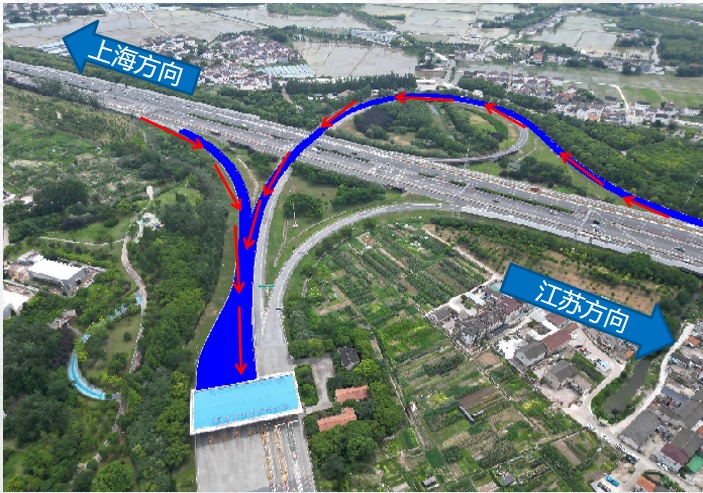 出口匝道封闭施工期间通行车辆可通过如下线路通过绿地大道、嘉松收费站离开高速主线: