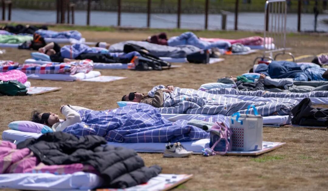今天(3月21日)是第26个世界睡眠日,备受关注的2026崇明森林睡眠大赛首场比赛正式“开睡”。50名参赛选手齐聚崇明东平国家森林公园,在负氧离子爆棚的森林中酣然入梦。这场比赛,“睡到自然醒”是唯一的KPI,一起去见识一下各路“睡神”的风采。 上午9时许,参赛选手陆续抵达赛场完成签到,领取比赛用品与蔬菜礼包后进入赛场。选手们来自上海各区,不少人专程为这场特别的赛事而来。“我从宝山区过来,平时工作比较累,休息的时候特别能睡,今天来挑战一下。”一位参赛选手说。 不管“睡功”如何,选手们都拿出了敬业的参赛态度。换上心爱的睡衣,带上舒适的抱枕,准备“大睡一场”,人群中,身穿奶牛花色睡衣的陶女士十分显眼。她告诉记者,自己和朋友一起从闵行区过来,感觉既开心又新鲜。 中午12时,比赛正式开始。赛场设于公园芳草地,三面环林、一面临水,春日阳光温柔洒下,枕着微风入眠,惬意十足。开赛不到半小时,赛场便响起鼾声。 据了解,此次睡眠大赛设多项现金奖励,比赛时间为中午12点至晚上7点,过程中严禁上厕所、刷手机等行为,选手身体三分之一严禁离开床垫,全程以光纤传感带等前沿睡眠监测设备采集数据,实时判定深睡、浅睡、快速眼动期等睡眠阶段,大屏幕同步展示选手数据,确保赛事公平科学。 比赛过程中,一些选手享受惬意小憩,也有选手不到一小时就睡醒弃赛。大家纷纷表示,在森林里放松休憩,既能舒缓身心,也能感受崇明春日美好。现场还设置了睡眠健康科普环节,上海市精神卫生中心院长赵敏现场科普睡眠知识,引导公众重视睡眠健康,关注身心状态。 赛场外同样热闹,主题集市集中展示崇明非遗文创、特色农品与传统小吃,“花瓷汇” 等互动体验活动趣味十足。园内春花绽放、鸟鸣清脆,梅花鹿悠闲漫步,陪伴选手们来参赛的亲友与游客在赏春观景中享受休闲时光。 据了解,今天是睡眠大赛的首场比赛,后续至4月26日,每周六均有一场比赛,5月2日、5月3日各有一场,总计8场比赛。截至目前,所有场次名额均已报满。 上海崇明生态旅游集团有限公司党委书记、董事长陈海星表示,举办睡眠大赛,旨在搭建趣味互动平台,在普及睡眠健康理念的同时,全方位展示崇明生态文旅、特色农业、体育活动等多元魅力,吸引更多市民走进崇明、了解崇明。 记者:蒋晓燕;摄影:吴雄 编辑:焦倩倩