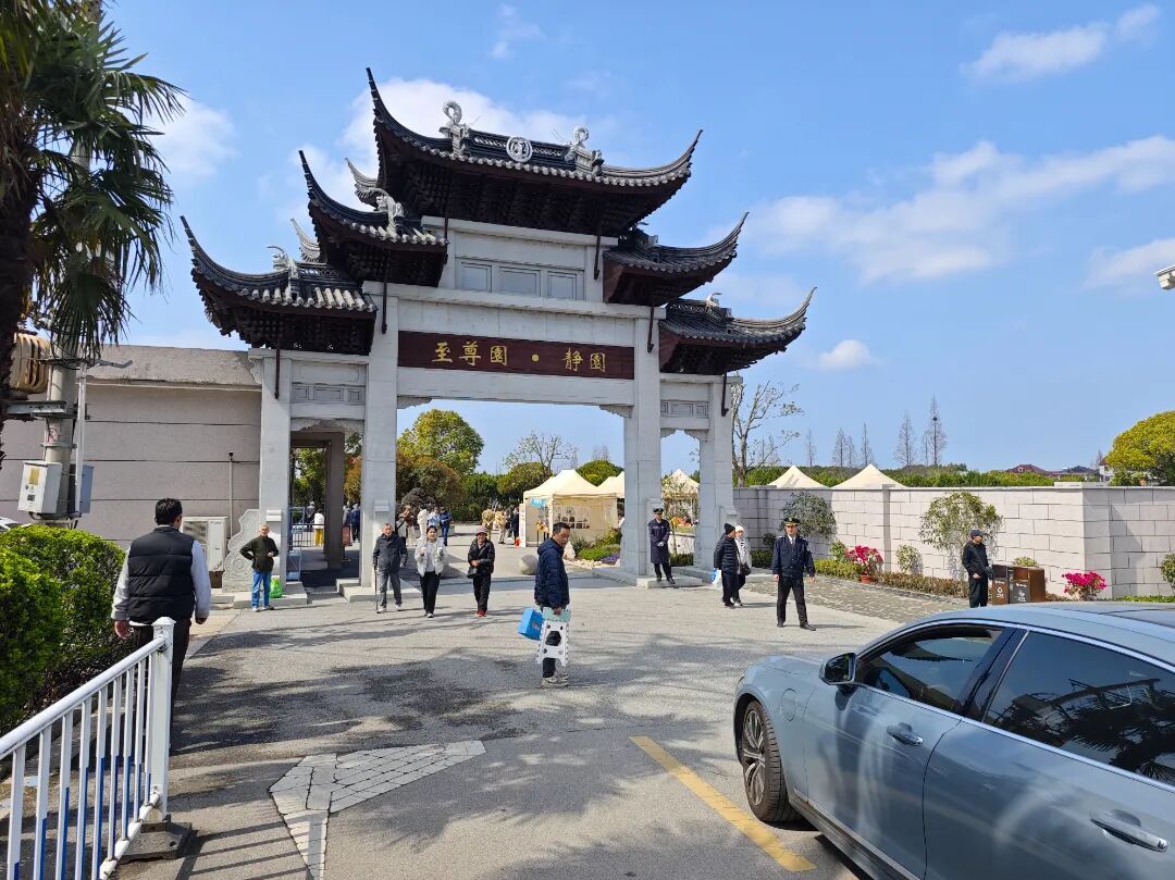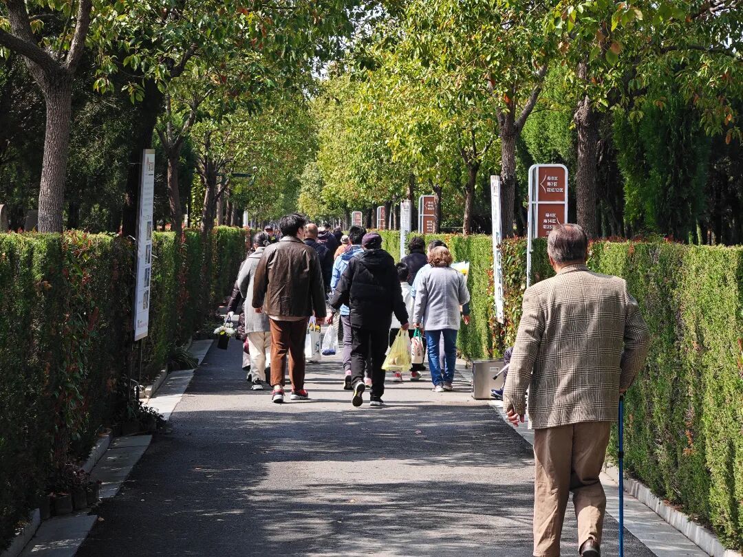 上午9点,记者在位于朱枫公路上的至尊园静园门口看到,进出的车流虽然不小,但在工作人员的引导下有序通行,没有出现长时间拥堵情况。园内道路干净整洁,随处可见文明祭扫、绿色低碳的宣传标识,手持白菊、黄菊的市民结伴有序入园,整体氛围安静肃穆。市民刘先生告诉记者:“我们就是怕正清明的时候人太多,所以特意提前过来,从虹口过来的路上车流量虽然不小,但整体很顺畅,比往年堵在路上几个小时好太多。而且墓园服务也很贴心,开了一路车过来还有免费咖啡喝,体验真的很好。”