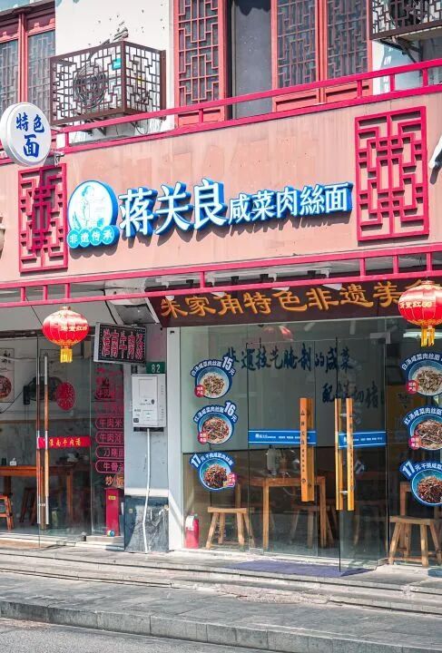 近几年,新溪路悄悄变了样。蒋关良肉丝面,这家后起之秀,硬是凭着一碗肉丝面在老店林立的新溪路站稳了脚跟。浇头是现炒的,肉丝切得粗细均匀,配上青椒、木耳、笋片,大火爆炒,锅气十足。还有,重庆小面的红油香气飘过来,勾人食欲。兰州拉面店里,师傅正把一团面拉得千丝万缕。在这里,本地的浓油赤酱和川渝的麻辣鲜香、西北的醇厚筋道奇妙地融合在一起。