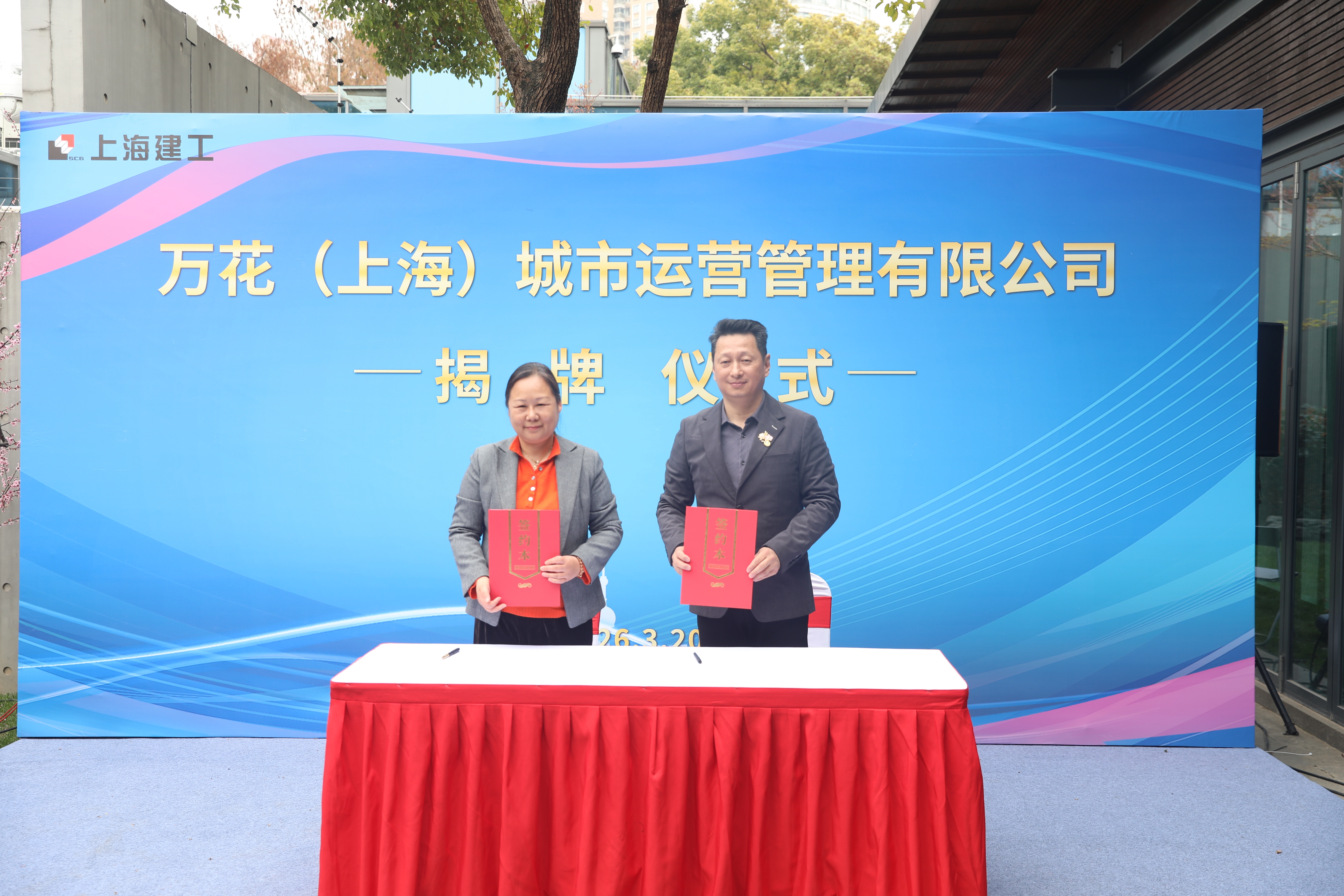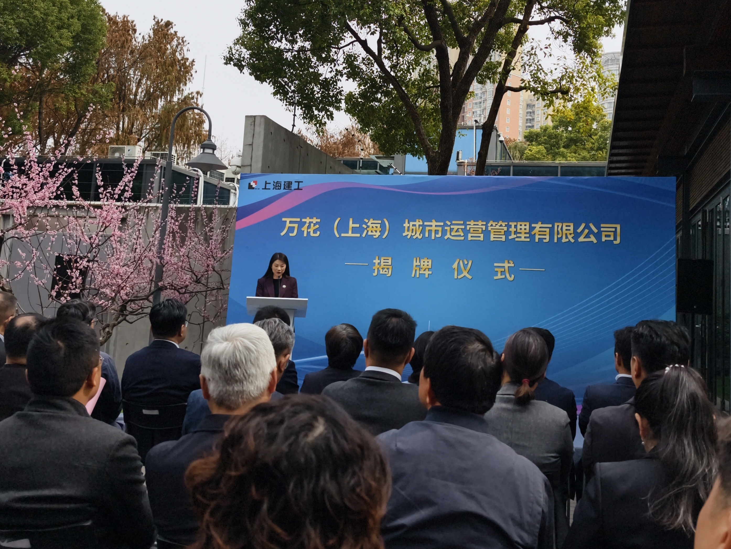 3月20日,万花(上海)城市运营管理有限公司(以下简称“万花公司”)揭牌仪式在静安雕塑公园举行。市国资委副主任、一级巡视员陈东,市绿化市容局二级巡视员许东新,副区长施煜,上海建工集团党委副书记、总裁叶卫东,上海建工集团党委副书记、工会主席殷红霞,上海建工集团副总裁徐建东,上海建工集团财务总监沈广军等出席仪式。