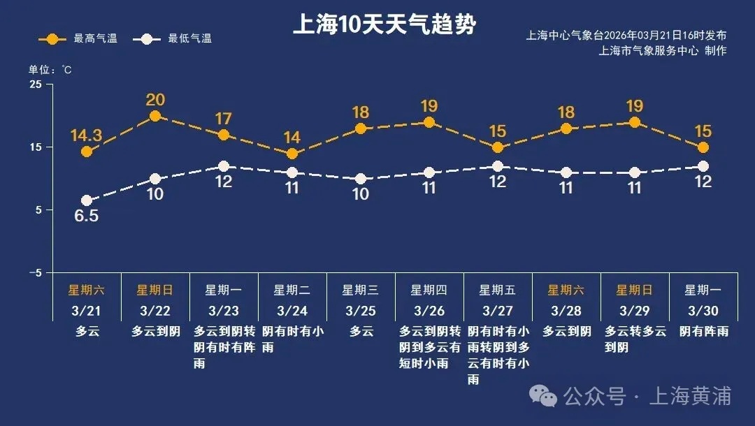 下周在暖湿气流影响下,不时有雨水串场,其中周一夜间降水较为明显,周四至周五有弱降水。最低气温在10~12℃之间,最高气温有所起伏,周二和周五降至14~15℃,其他时段在17℃以上,整体气温比前期上升一个小台阶。