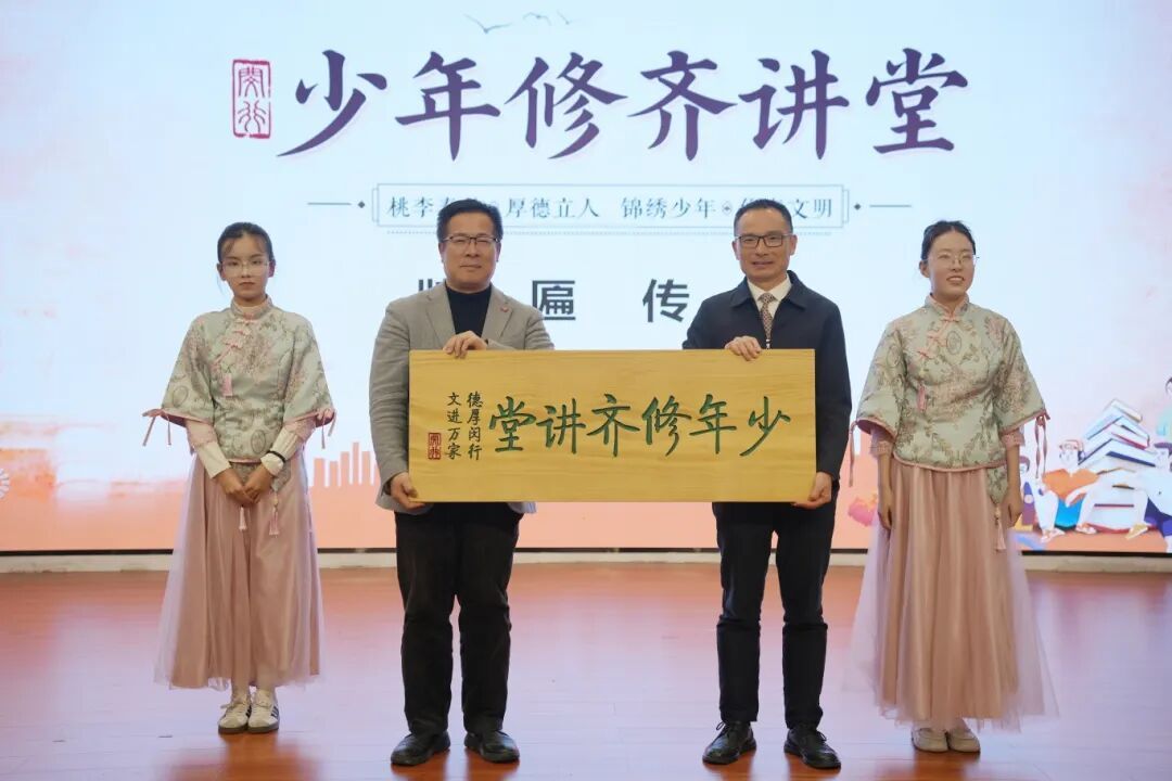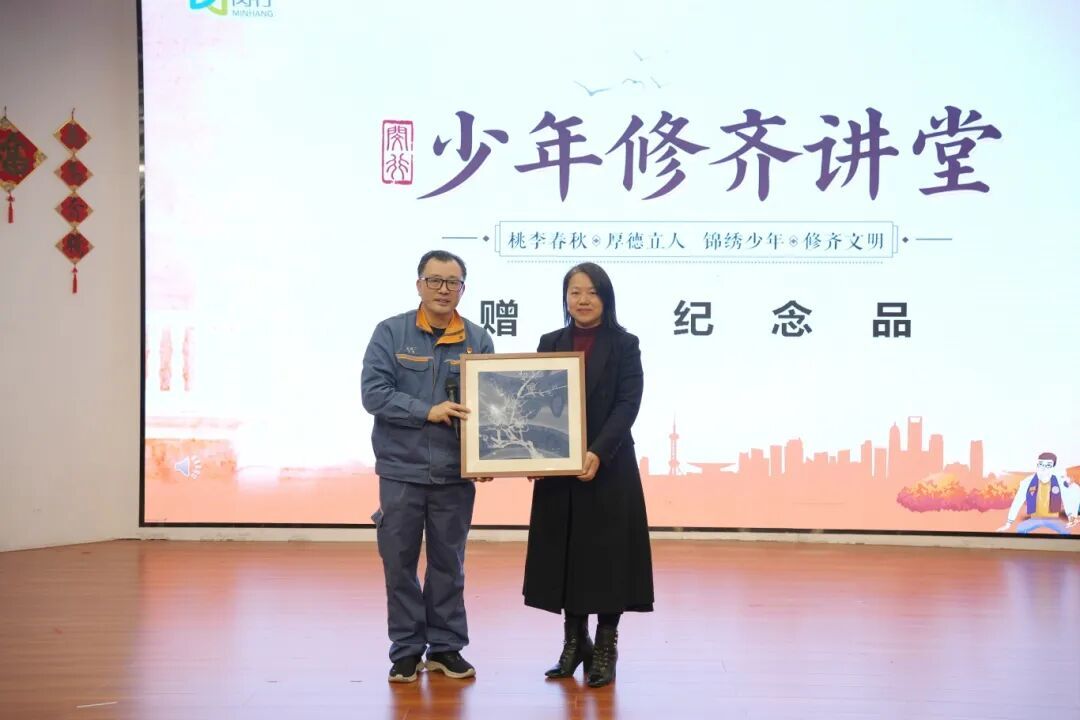 讲座结束之后,“少年修齐讲堂” 牌匾传交仪式庄重启幕。上海市闵行区浦江第二中学将承载着育人使命的牌匾郑重移交至北京外国语大学附属上海闵行田园高级中学。这一举动,既是系列活动的接续延伸,更是“修身齐家”精神在闵行区校园间薪火相传的生动见证——红色基因、文化情怀与育人初心,正随这块牌匾,深深植根于更多少年的心田。