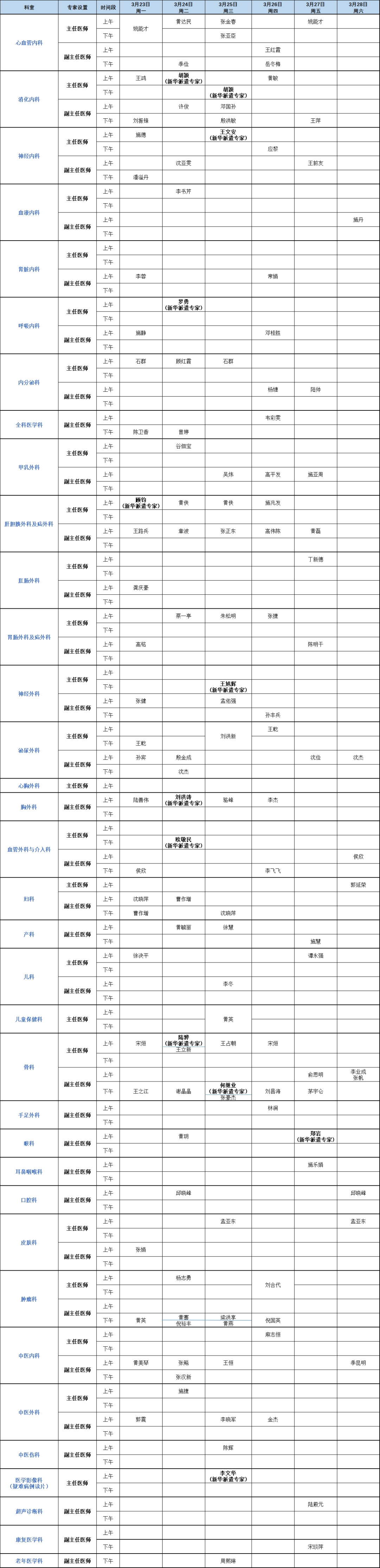 专家门诊安排(点击图片可放大)