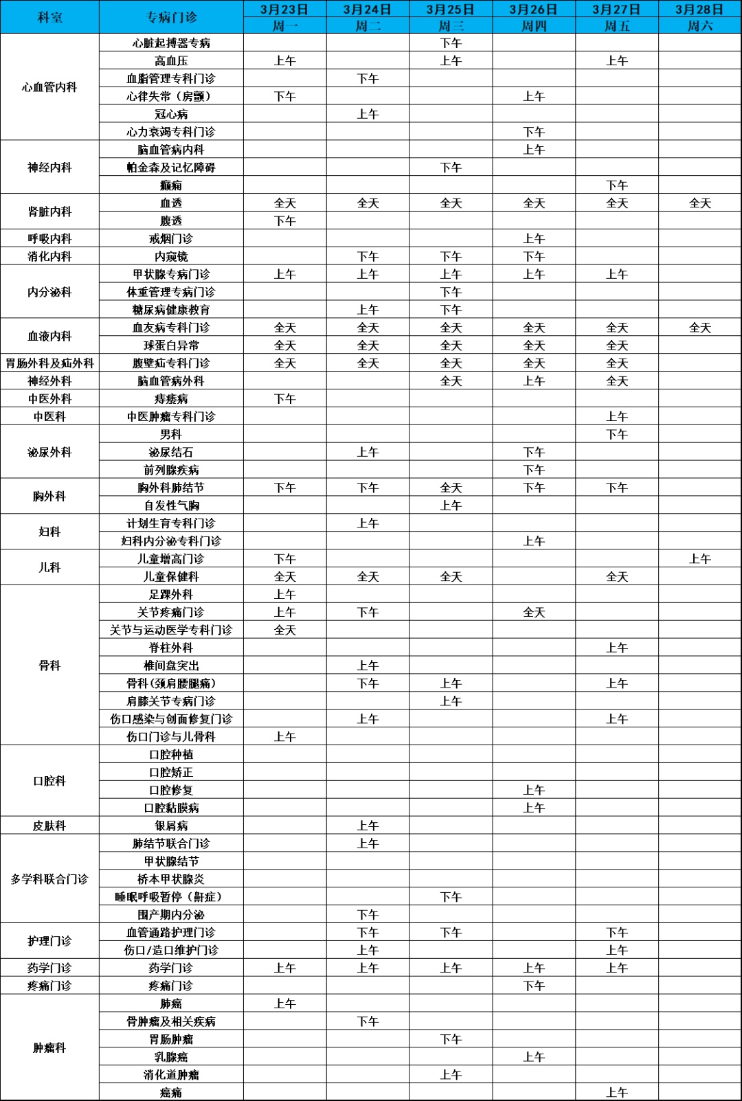 专病门诊安排(点击图片可放大)