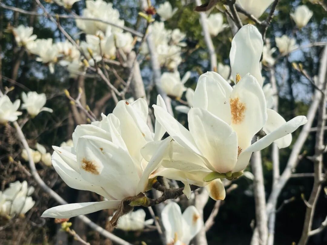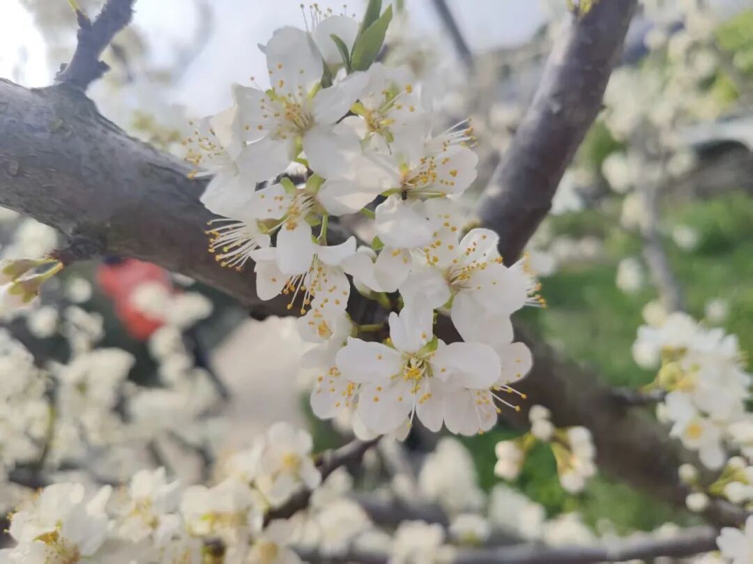 枝头白玉兰亭亭玉立,梨花似雪清雅,而李花、海棠也纷纷展颜,妆点着房前屋后。