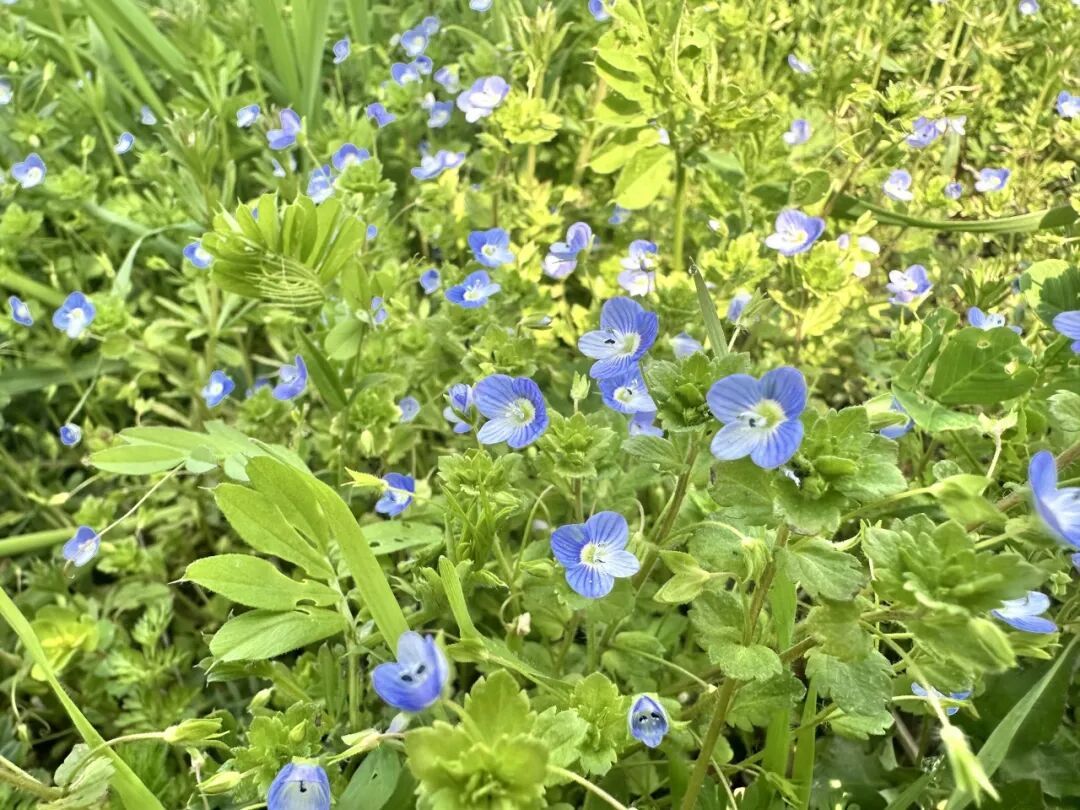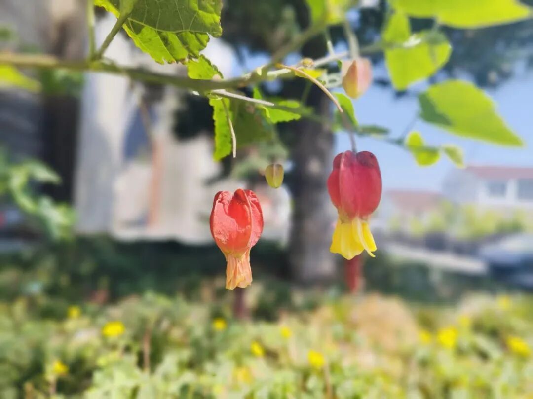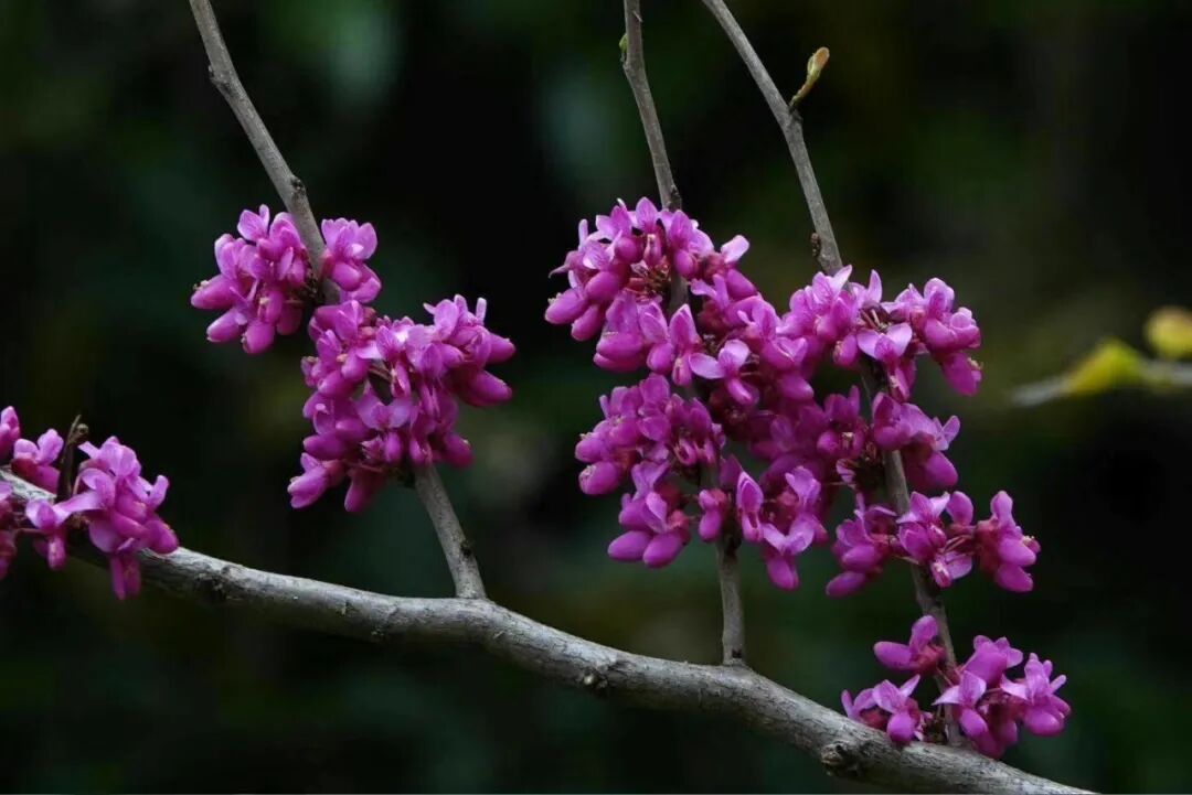 抬头望去,紫荆花簇拥枝头,热烈绽放;低头可见,灯笼花玲珑可爱,更有星星点点的阿拉伯婆婆纳在草甸上闪烁蓝辉,共同织就了一幅层次丰富、色彩斑斓的田野画卷。