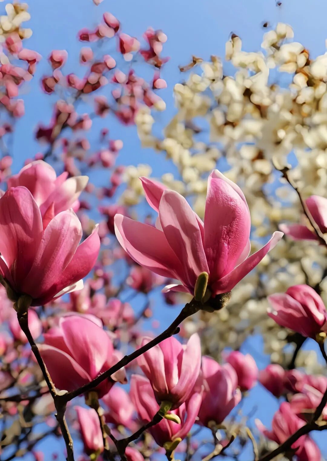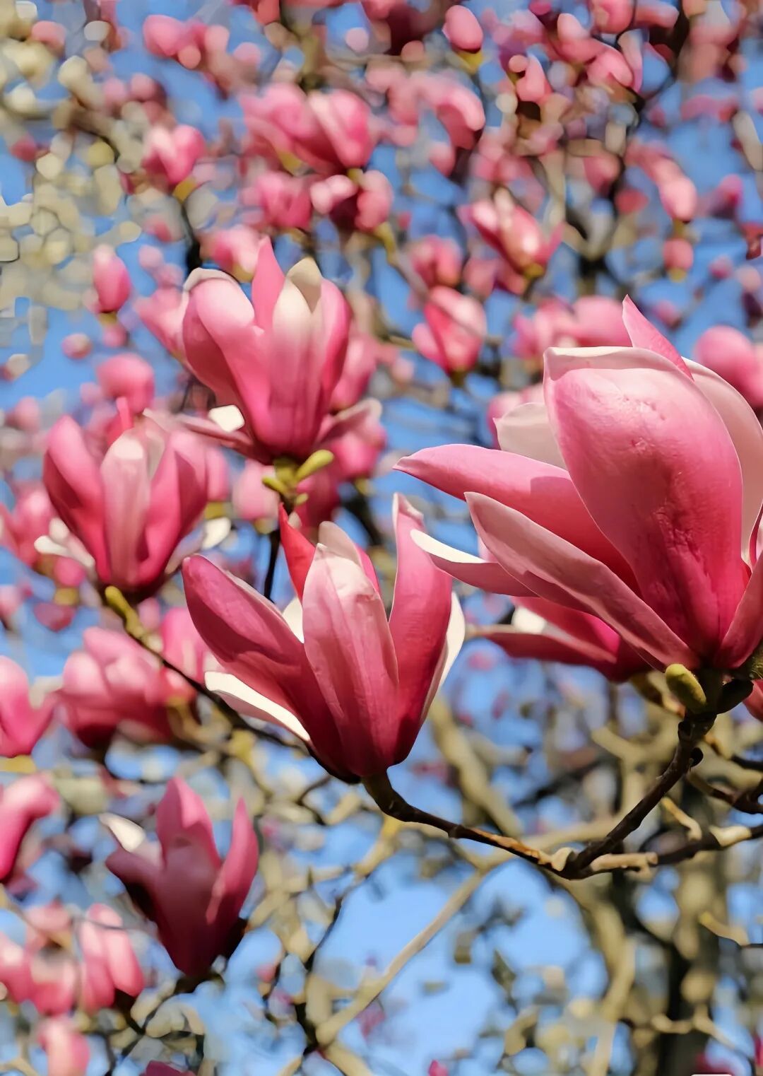 紫玉兰又名“辛夷”,属于木兰科玉兰属落叶灌木,自古就是庭院名贵花木。它先开花后长叶,花朵挺拔向上,花色浓艳如霞,雍容华贵又自带仙气,比白玉兰更多了几分典雅大气。