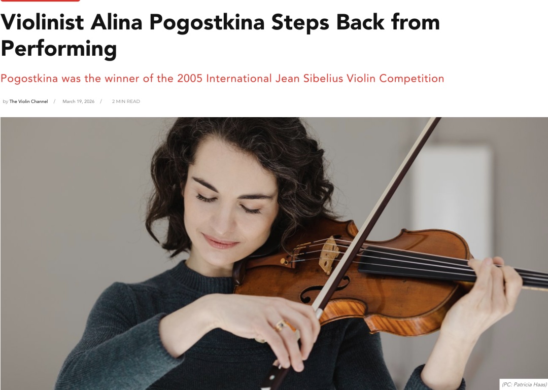 近日,42岁的小提琴家阿丽娜·波戈斯特金娜(Alina Pogostkina)在社交媒体平台公布告别舞台。