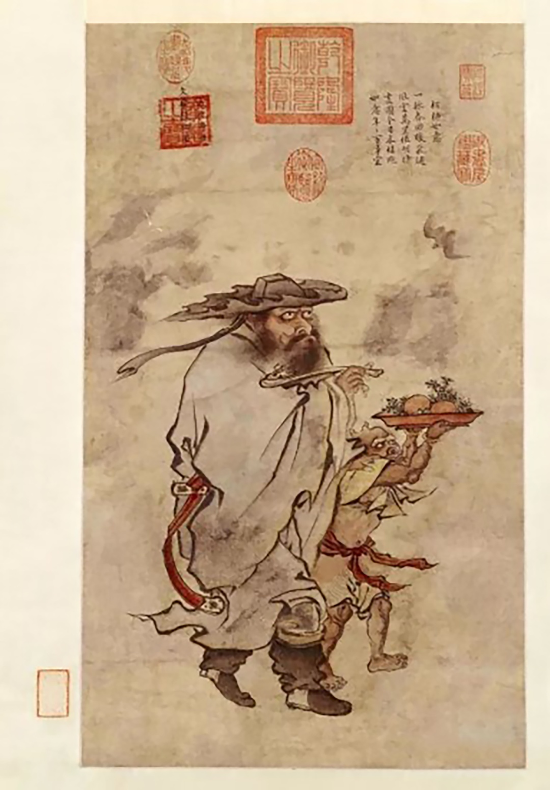 明宪宗画过一幅《岁朝佳兆图》,画的是钟馗手持如意,旁边添了蝙蝠和柿子,什么意思?谐音吉祥,图个“百事如意”。到了清代,乾隆皇帝爱给古物题诗,给宫里收藏的古铜如意写过一句“一柄曲拳代谈者”,他心里也明白,这东西早就不挠痒了,是用来“代谈”的雅器。