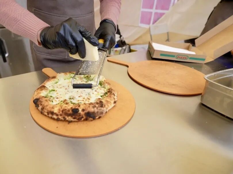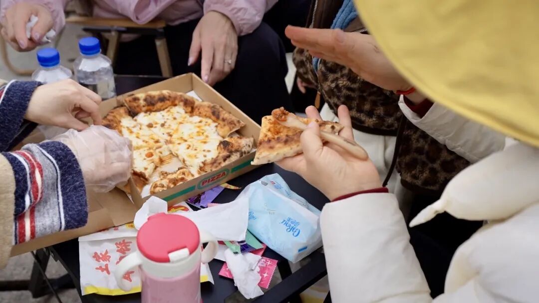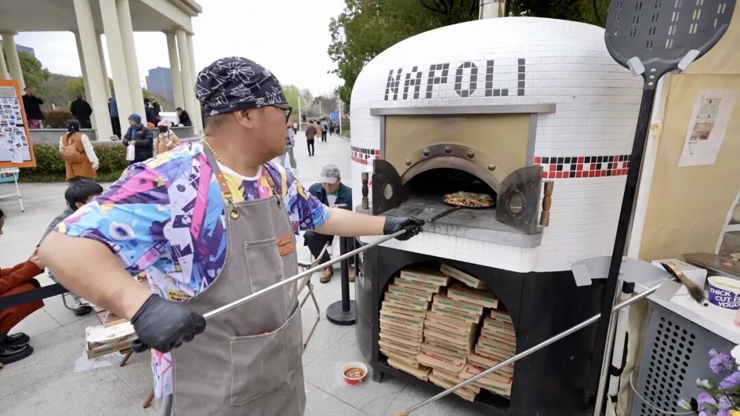 “本来是来看花的,没想到被这股香味‘钉’在这里走不动道了。”前来赏花的市民李先生一手拿着刚切下的比萨,一手举着手机准备随时定格花海与美食的瞬间。“不出国门,就能在花丛旁吃到这么正宗的味道,这个周末太惬意了!”