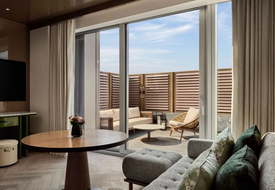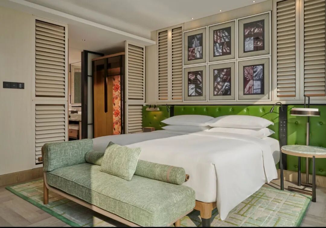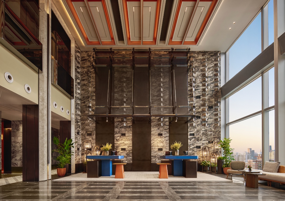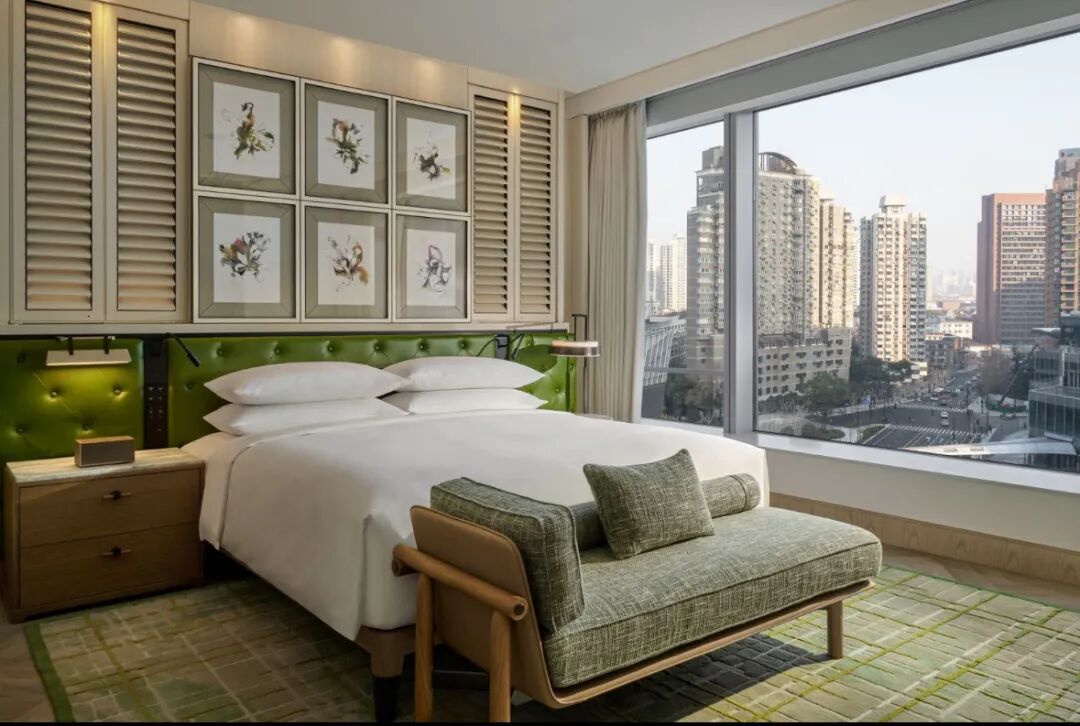 上海徐家汇中心安达仕酒店的设计理念是“引景入室”,致力于打造一个连接历史弄堂与未来天际线的“垂直上海邻里”。酒店共设267间客房与套房,整体客房设计理念采用住宅风格,从走廊设计便突出了上海弄堂邻里中标志性的梧桐树剪影。每间客房的房门设计得各不相同,以强调居住氛围;室内设计则借鉴复式住宅的模式:独立式衣橱巧妙衔接卫浴空间,立体瓷砖墙面营造如家般的私密氛围,而落地窗则将石库门老建筑与摩天楼交相辉映的戏剧性城市景观尽收眼底。