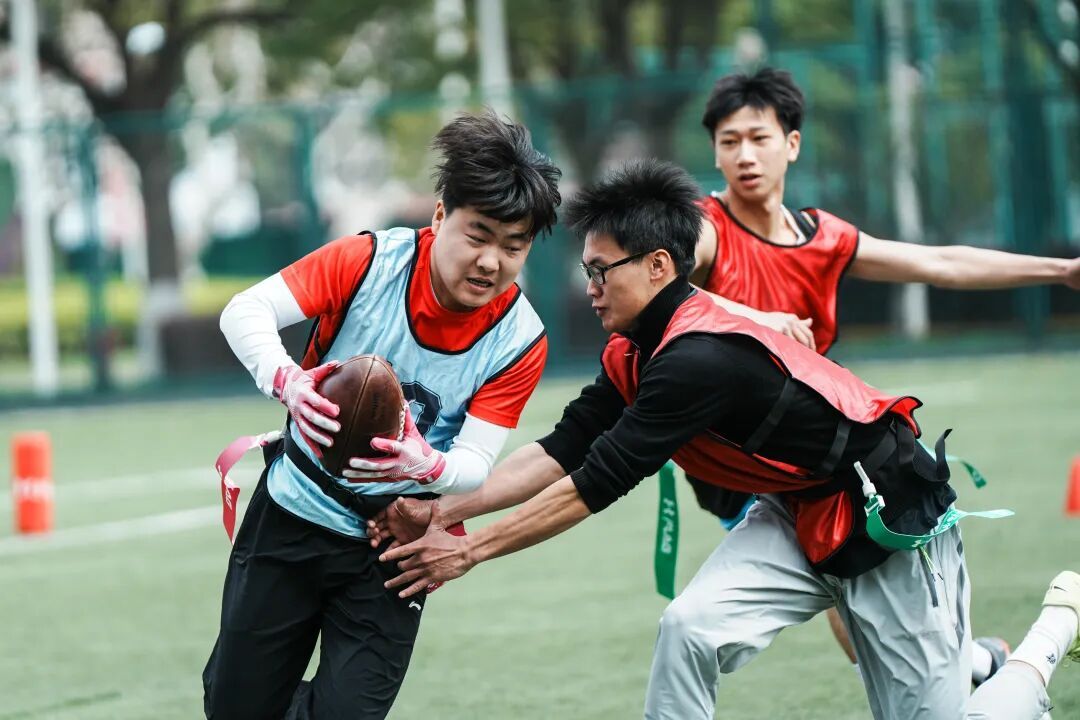 3月20日,随着裁判哨声响起,“班超”联赛首战正式打响,整个校园瞬间被青春活力点燃。赛场上,橄榄球在空中划出流畅的弧线,参赛学生全力奔跑、默契配合,每一次稳妥传球、每一次奋力防守,不仅是技术的展示,更是平日里班级集体锻炼成果的集中展现。这也是校园全民健身最真实、最鲜活的样子。