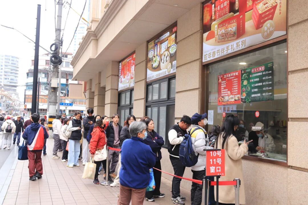 上午10点左右,南京路沈大成门前热闹非凡,七条队伍整齐排开,老人和年轻人都赶来排队。这里,藏着老上海的烟火底蕴。