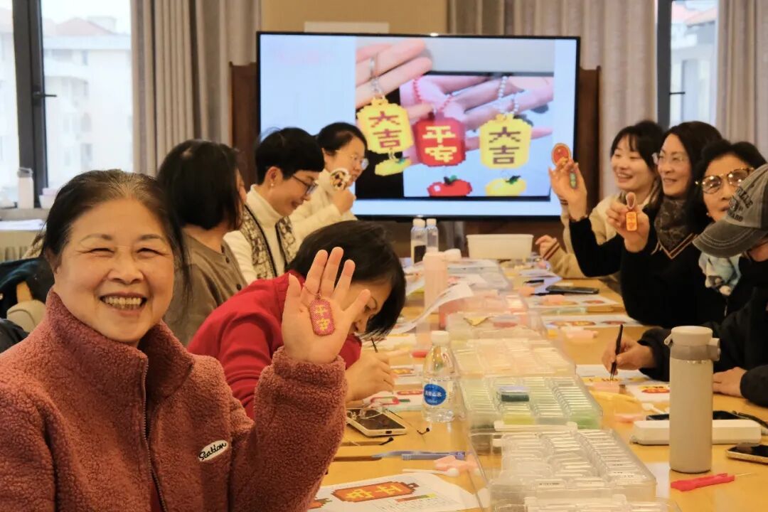小小的拼豆挂件带着温情与暖意,由小朋友们轻轻放到老人手中。在笑声中,小朋友们很快又冲回活动室:“我们还要再接着拼!”
