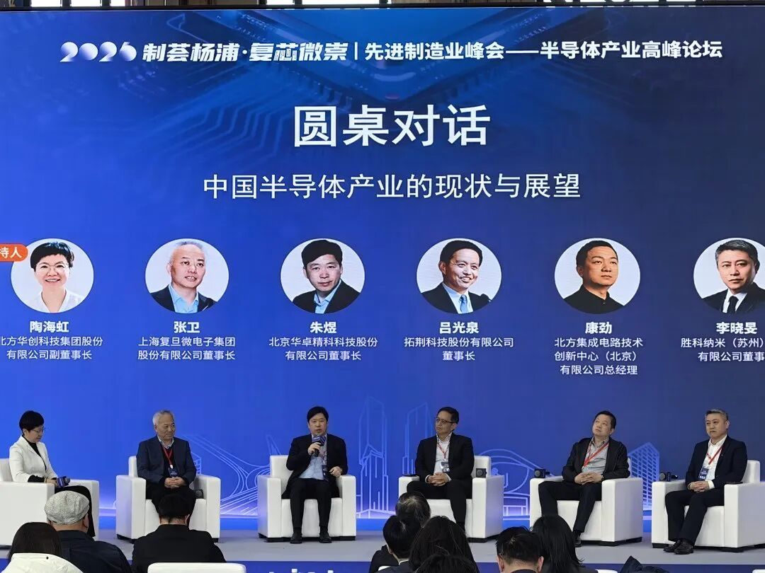 首场高端圆桌对话围绕“中国半导体产业的现状与展望”主题展开,由北方华创科技集团股份有限公司董事、执行委员会副主席、总裁陶海虹主持,复旦大学微电子学院院长、上海复旦微电子集团股份有限公司董事长张卫,北京华卓精科科技股份有限公司董事长朱煜,拓荆科技股份有限公司董事长吕光泉,北方集成电路技术创新中心(北京)有限公司总经理康劲,胜科纳米(苏州)股份有限公司董事长李晓旻作为对话嘉宾。各位嘉宾从各自领域出发,分享了前沿产业实践与发展思考,围绕核心技术攻关、产业生态构建、企业战略布局等议题展开深入交流。