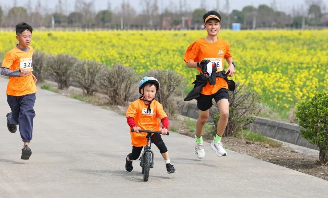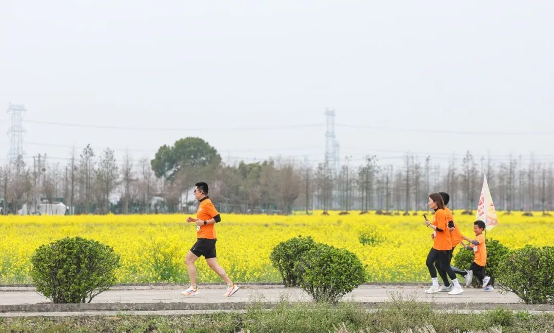 本届赛事恰逢小昆山镇第八届油菜花季开幕,选手们奔跑在千亩金色花海中,沿途杏花、桃花相映成趣,构成独特的春日风景。“一路都是油菜花,心情特别愉悦,希望每年都能参加。”选手蒋庆青表示。