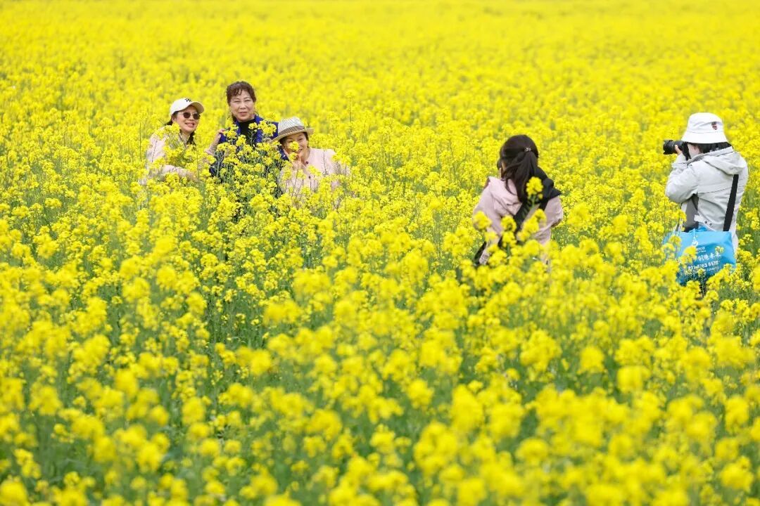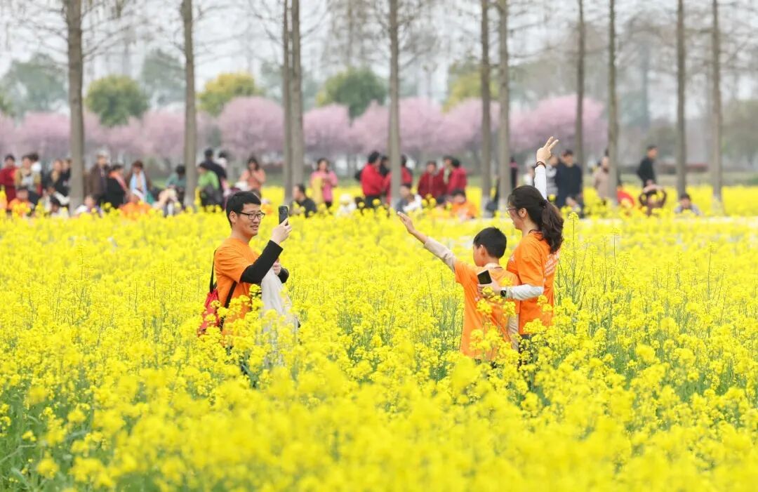 本届油菜花季将自然景致与趣味体验深度融合,打造沉浸式游玩场景。一望无际的金色花海随风翻涌,清甜花香与“二陆”故里文脉交织,勾勒出江南春日的治愈画卷。蜿蜒的花田栈道上,网红转角景观别致,游人纷纷驻足打卡,用镜头定格美好。“天气晴好,和姐妹们一起来赏花拍照,特别舒服。”游客刘女士说。