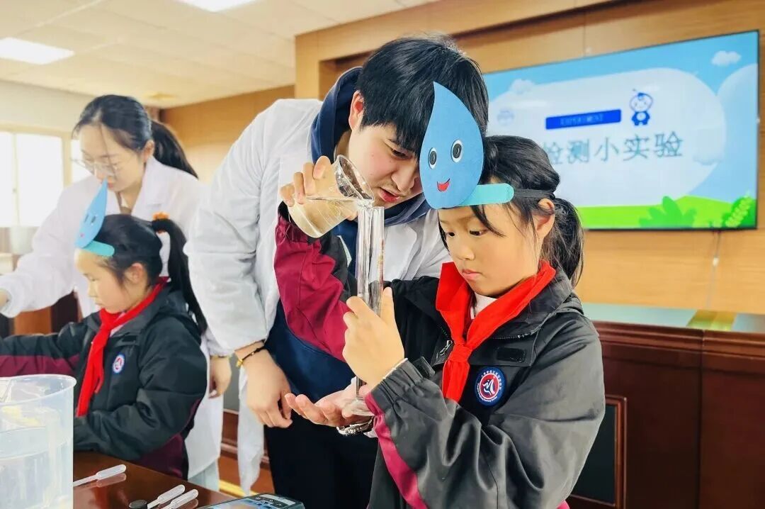 实地探访结束后,实践环节随即启动。学生们先以“小小实验员”身份参与趣味水实验,在动手操作中掌握节水小窍门;再通过节水科普讲座,系统了解水资源现状与保护要点。