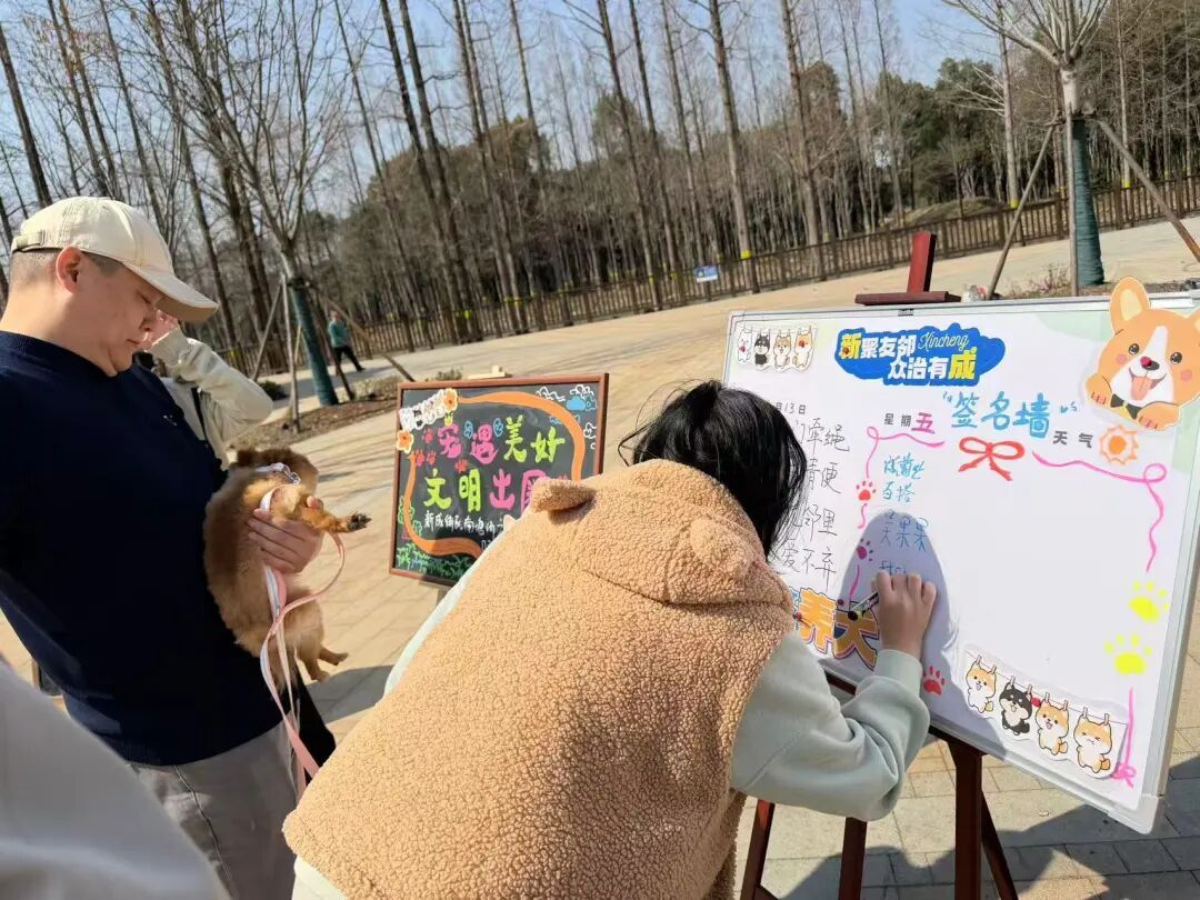 线下举办“文明养宠整点新花YOUNG”游园会,在新成党群服务中心、我嘉邻里中心设置三大活动板块:“文明‘宠’动员”趣味闯关融合跳房子、骰子问答等游戏,引导参与者在互动中朗读文明标语、学习养宠规范。“文明知识大挑战”幸运扭蛋机将知识点藏入扭蛋,答对即可兑换主题文创礼品。“明星铲屎官”互动打卡墙则邀请居民写下自己的文明养宠故事,公开作出承诺。活动还延伸至各社区新时代文明实践站、狂犬病疫苗集中接种点、青年聚集区及商圈等人流密集场所,结合萌宠派对、青年交友等跨界活动,进一步扩大覆盖人群。