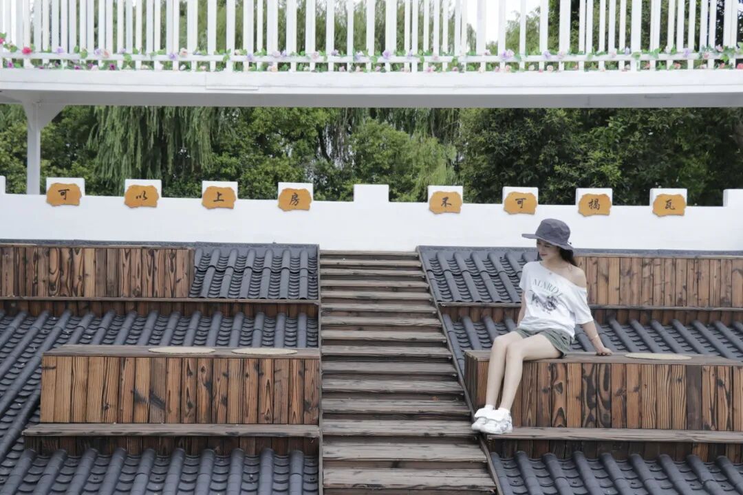 沿着顾泾河漫步,村宅改造的“竹隐清境”民宿代表了乡村对未来的探索,这座由海归三兄弟返乡改造的现代建筑,拥有包豪斯风格的灰白外墙、巨大的玻璃窗,虽区别于传统古村落,却又有美学上的和谐。小院屋后是蜿蜒的顾泾,旁侧保留了原有的泾浜,一片百年竹林被木质小径环绕,颇有“曲径通幽”的意境。“小院边的河流会随着每天的潮汐变化水流方向,涨潮的时候,竹叶落到水里会聚集在靠近村宅的那侧,落潮时又会飘到另一侧。静坐在小院里喝茶,可以感受到每天的潮起潮落。”在周丽娜看来,“竹隐清境”的存在可以让更多人感受“曲水泾浜”的独特魅力。而这种“新与旧”的碰撞与共生,在最新的示范项目“花隐小院”中得到了完美融合,网红“类屋顶”休闲区以叠瓦造型复刻传统屋顶纹路,室内天花板上,木横梁搭配月浦竹编,让传统文化在沪派江南的营造中得以活态传承,处处流露着“陪伴式设计”的匠心。