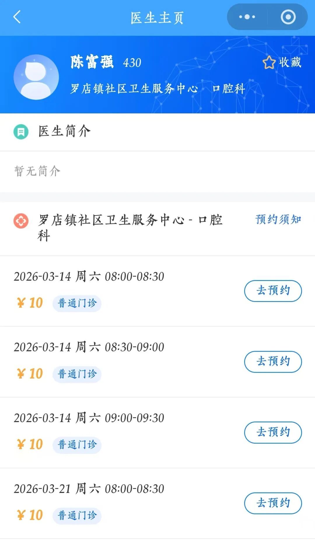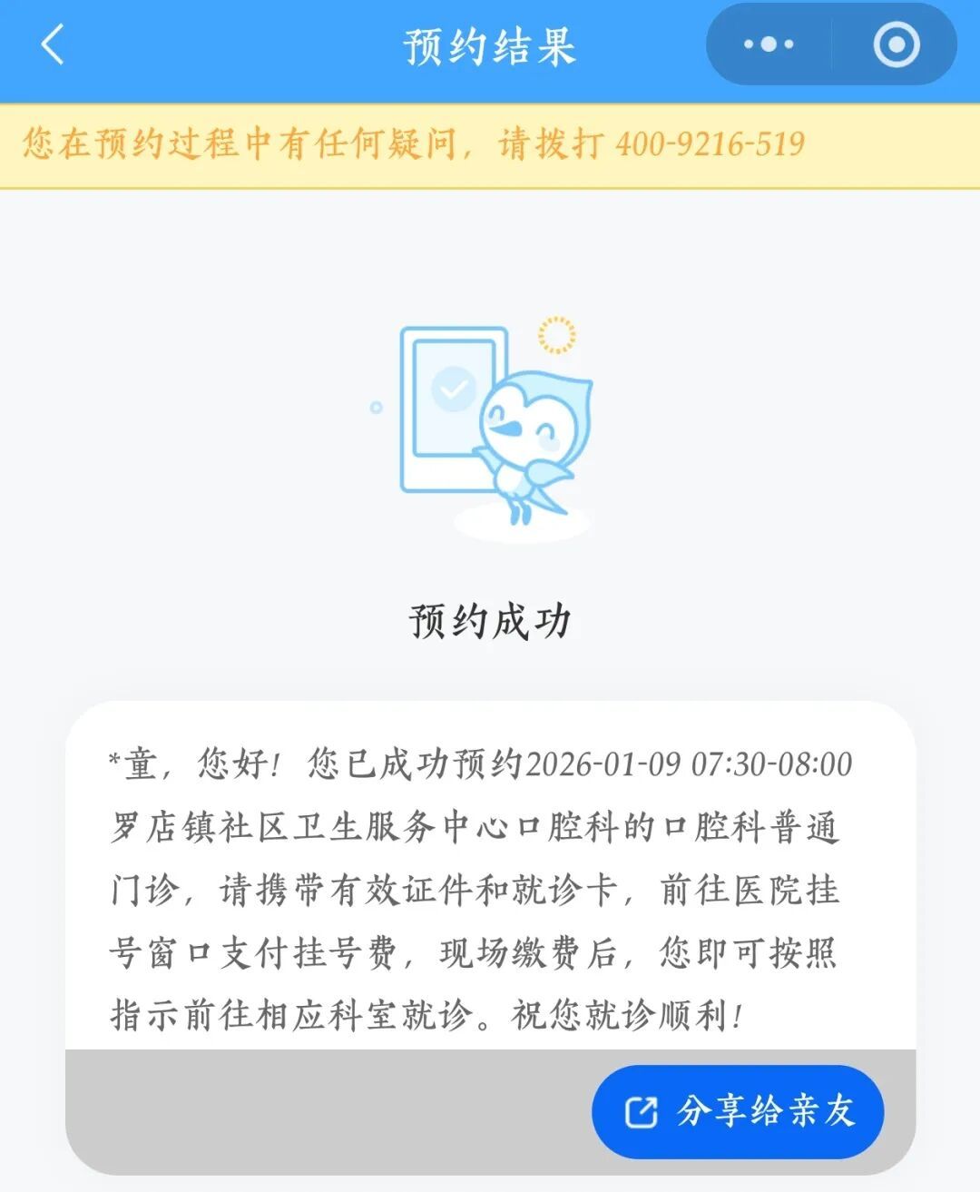 健康云小程序:登录后选择“预约挂号”→搜索“罗店镇社区卫生服务中心”→选择科室及医生→确认时段。