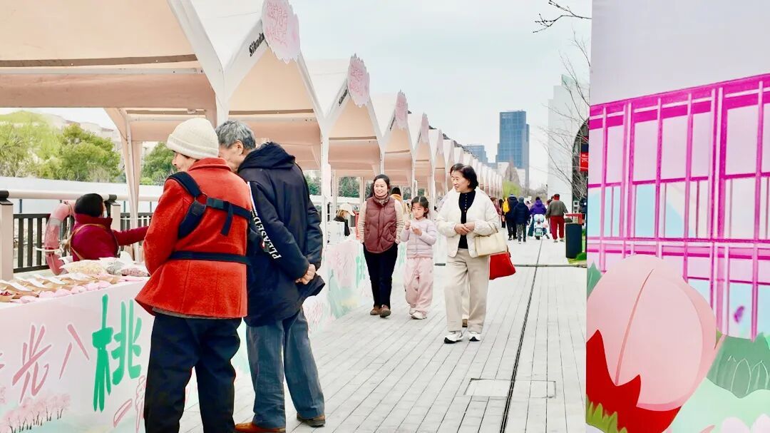 三月沪上,桃红柳绿。3月21日至22日,2026年第36届上海桃花节普陀活动“桃韵春光·浦享芳华”如约而至。本届桃花节由浦东新区、长宁区、普陀区和奉贤区共同主办,创新打造“四区联动”的文旅新场景。其中,由普陀区文旅局指导、桃浦镇主办的普陀活动,在桃浦镇铺展出春色画卷。 活动从一场融合CityRun与CityRide的“城市漫游路”开启。来自周边居民区及桃浦企事业单位的参与者从UBOX桃蔓里创意艺术社区启程,途经李子园公园、TOP中央公园,最终抵达桃浦公园的烂漫花海——全程5公里的路线,恰好串起桃浦最动人的春日画卷。桃浦公园里,桃花已挂满枝头,有的粉嫩如霞,有的鲜艳似火。参与者们用透明明信片框住桃花拍照,仿佛将春日盛景永远定格。 沿途的打卡点既是漫游的驿站,也是惊喜所在,集齐专属印章,恰似收集散落的春日碎片。大家收获桃花文创产品,爱不释手。参与者王乐说:“一路跑跑停停很惬意,很难得有这个机会欣赏春色。” “城市漫游”归来,此时的桃蔓里创意艺术社区河滨步道已化作一座流动的春日工坊,“桃浦春市·花样非遗”主题集市在这里热闹开张。 桃花香包制作区飘出淡淡的草本香气。12岁的潘迎雪和父亲一起亲手制作香囊,琳琅满目的干花品种多样,“我选了薰衣草、茉莉、橘皮,还有桃花,这和外面卖的不一样,是我自己亲手选的香味。”干花装囊,再用粉色桃花袋套上,精致又可人。 剪纸非遗传承人手把手教孩子们创作。一张红纸,几番折叠,一朵桃花便在孩子们手中盛开。糖浆在非遗传承人手中流转,手腕轻转,一朵晶莹的桃花便落在案板上。漆扇体验区里,市民们挑选写着“春风始万物生”的扇面,在滴上大漆的水面中轻轻一转,一面独一无二的扇子便成形了。 十余个文创摊位、五个便民服务点,居民们逛着、聊着、笑着——春日的烟火气具体而温暖。便民摊位前,志愿者们为老年市民们递水、看座,让这个春日又暖了几分。 这个春天,桃蔓里创意艺术社区不只属于桃花,也属于艺术。走进方寸山当代艺术中心,“万物灵”生态装置艺术展让许多人停下了脚步。艺术家麻进用上海科技馆改造工程的回收旧物,让废弃铝板化作孔雀的羽尾,用3D打印勾勒螳螂的身姿。那些原本即将被废弃的材料,在此重获新生,成为独具创意的艺术作品,也让“新生”的内涵具象呈现。 而在7号楼的“游戏,老年与中国”摄影展现场,则是另一番温情景象。法国摄影家阿兰·德·弗莱塞尔的镜头下,中国老人的日常被定格为充满诗意的画面,生动展现了基层社区的烟火温度与深厚文化底蕴。那一刻,艺术不再高高在上,而是照进了寻常百姓的生活里。 一场桃花节,让市民在行走、体验与观赏中,感受到桃浦的生态之美与人文之暖,也见证了文商旅体展融合带来的城市活力。