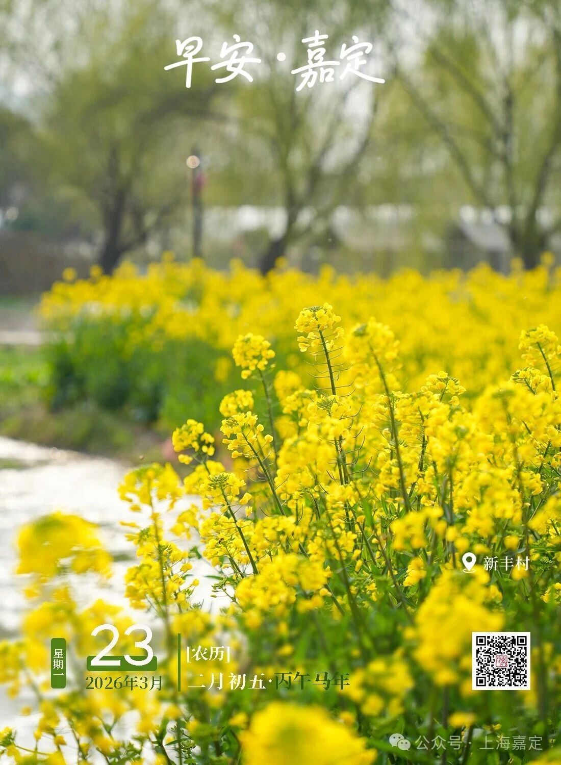 春风轻拂,大地从酣眠中悠然醒来,油菜花肆意绽放,似金色海洋翻涌浪波。早安,嘉定!愿你今日心藏芬芳,一路繁花。