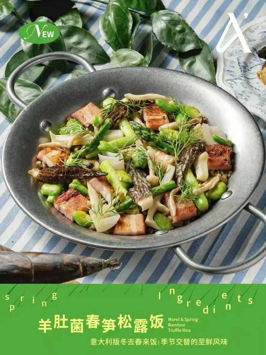 羊肚菌以其独特的香气和肉质口感,佐以奶油酱汁,每一口都是山林深处的精华;脆嫩的春笋经过西式烹饪手法的演绎,保留了原始的清新,又多了几分奶油的醇香……这是一场东西方食材的对话,也是一曲对春天的礼赞。